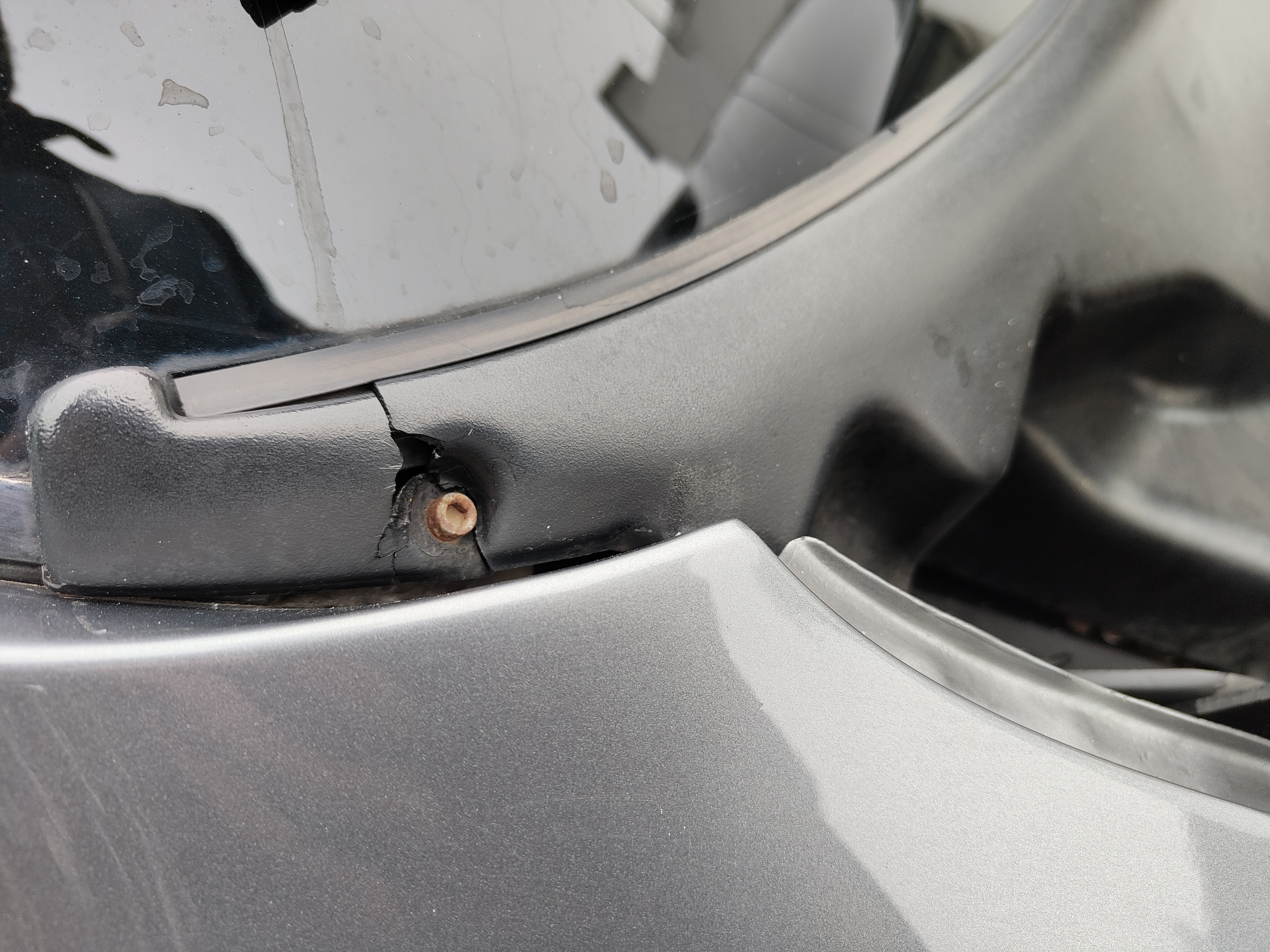 Je vais profiter pour trouver, la baie de pare-brise extérieur qui est cassée au niveau des fixations. (La plaque par-vent de pare-brise), le joint est propre, mais il n'appui pas bien du coup.