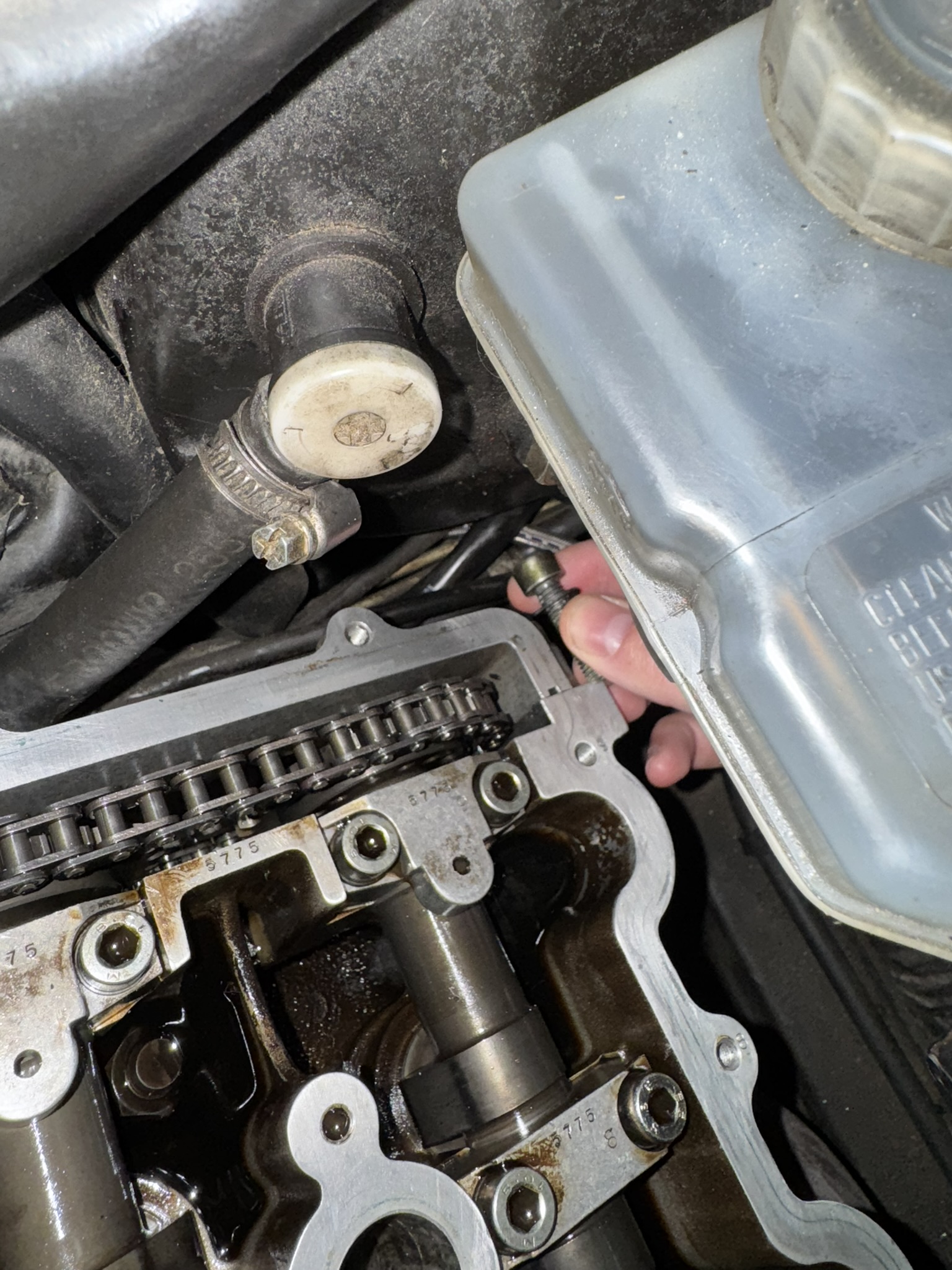 10 vis M8 dans la longueur entre les culasses et la cloison pare-feu avec tout le bordel qui passe par là, donc pas beaucoup de place pour les sortir. Je m’en suis tiré avec un « mini-cliquet » tel que celui-ci : https://amzn.eu/d/dry5hew