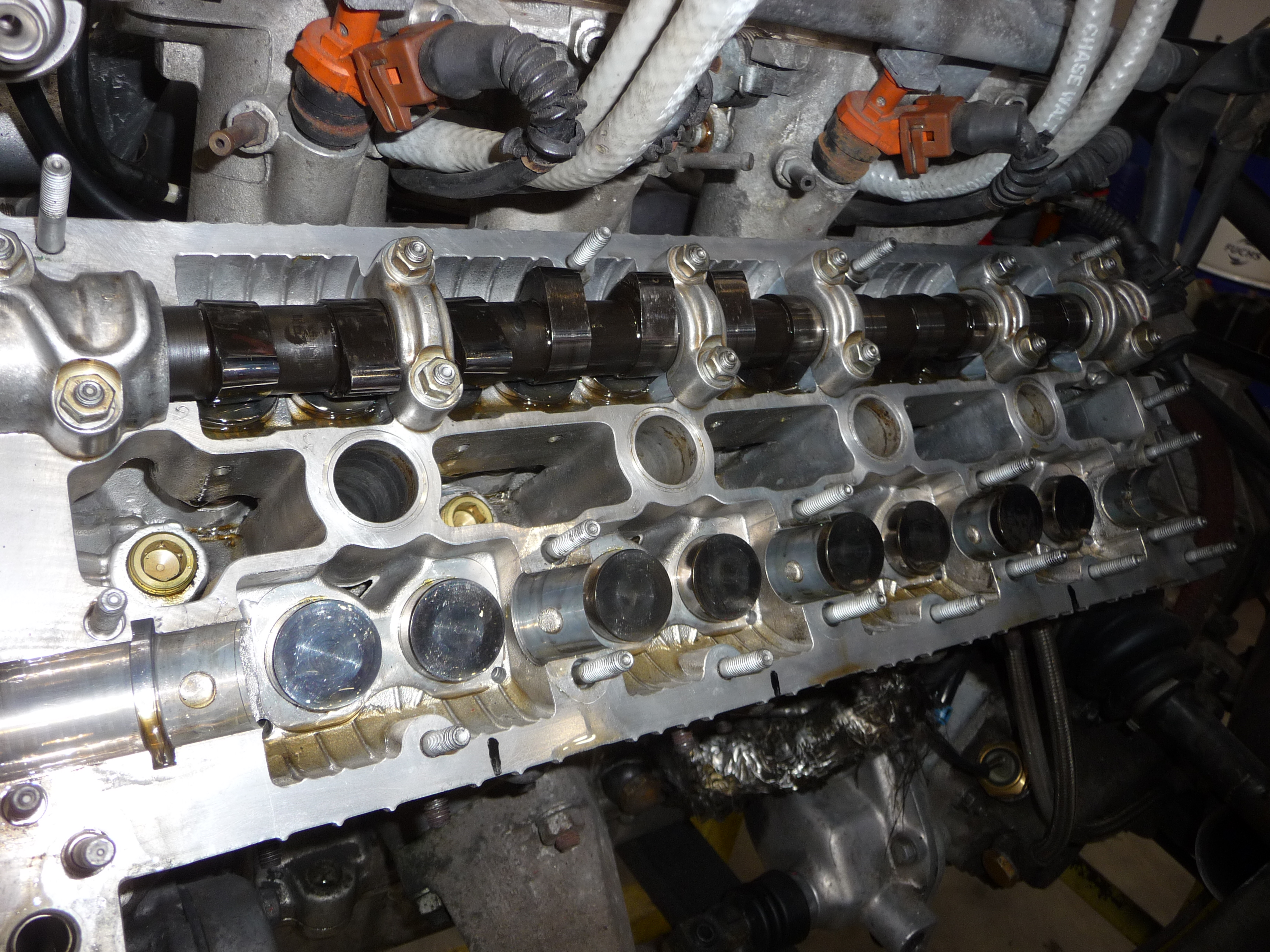 up-date sur le moteur...........Il tourne toujours sur 5 cylindres 1/2.J'ai fais hier un test de fuites des cylindres (air-comprimé).Ce n'est a mon sens pas catastrophique,surtout que je ne l'ai pas fait dans les regles de l'art,n'ayant pas découvert les arbres a cames pour bien les mettre en balance mais ne regardant seulement le PMH des pistons avec une pige ds le trous de bougie. Les pistons etant fort inclinés en rapport a la bougie,ce n'est pas tres precis.J'ai cependant découvert une extreme sensibilité a la position PMH piston,donc soupapes,ce qui me met le doute du jeu soupapes.Je vais donc vérifier ca.Le probleme est de le regler...........impossible, ayant des pastilles et meme devant retirer le carter d'arbre a cames pour les changer !