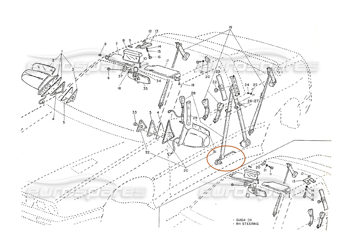 J'ai perdu la barre d'attache des ceintures de sécurité (en rouge sur le dessin).