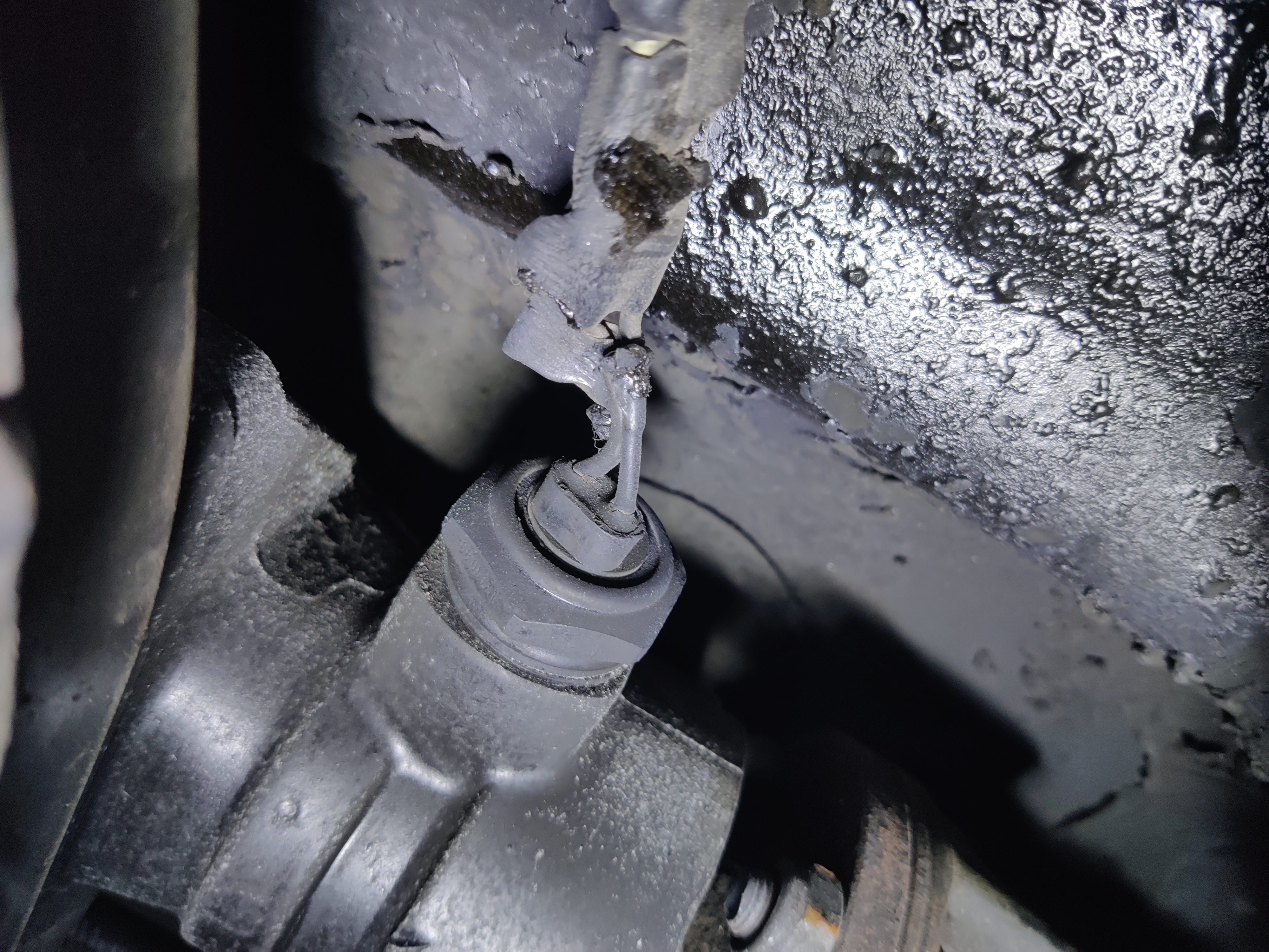 Déjà, c'est galère à enlever, il faut une clef de 32 (que je n'ai pas bien entendu), je sors la grosse pince multiprise, et surprise, ça se dévisse sans aucune résistance.