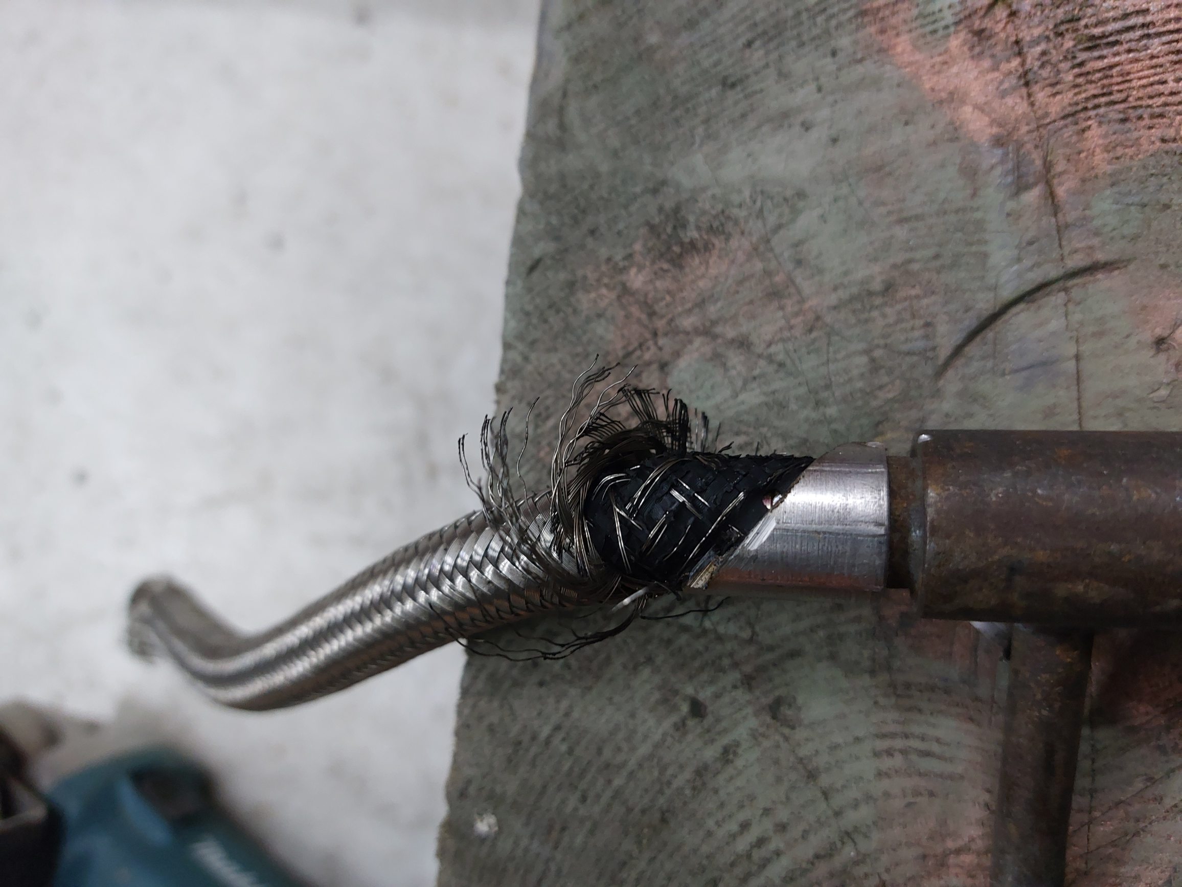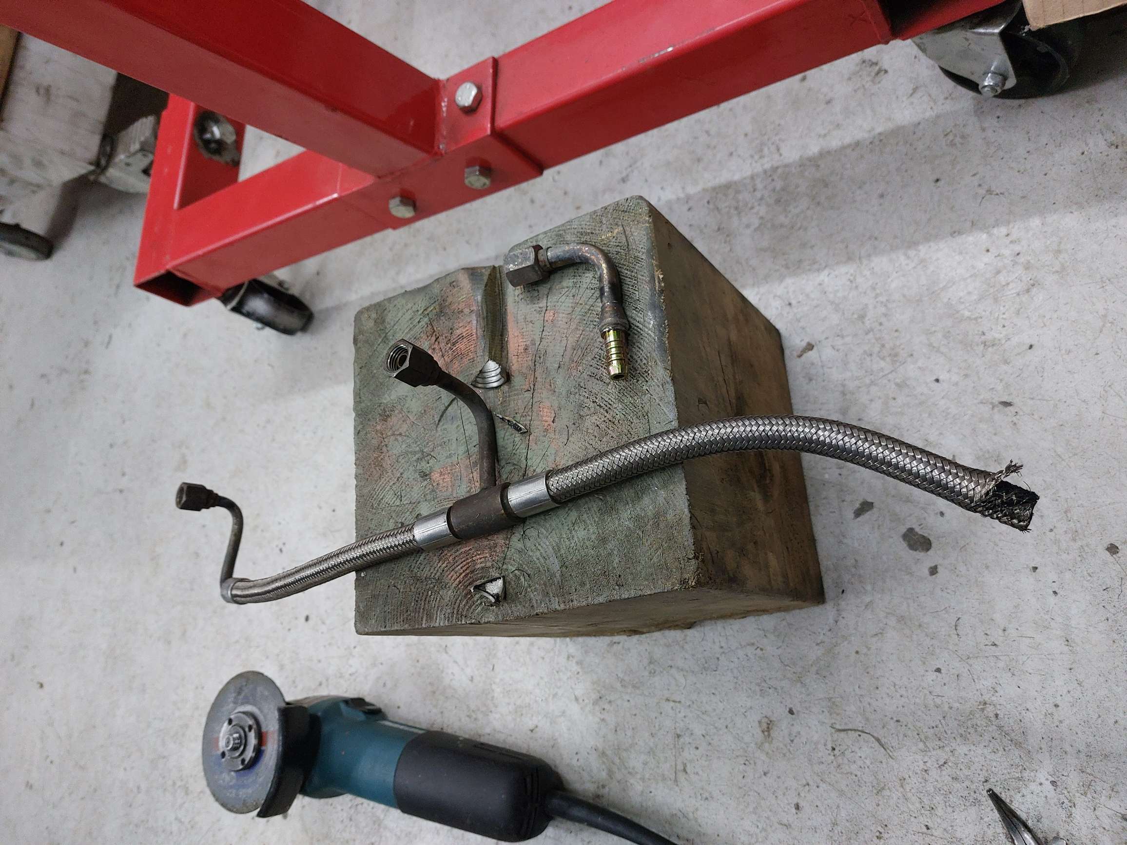 Les raccords du conduit armé sont en 10mm, j'ai mis de la durite normale. Au moins le contrôle visuel de l'état des durites est possible.