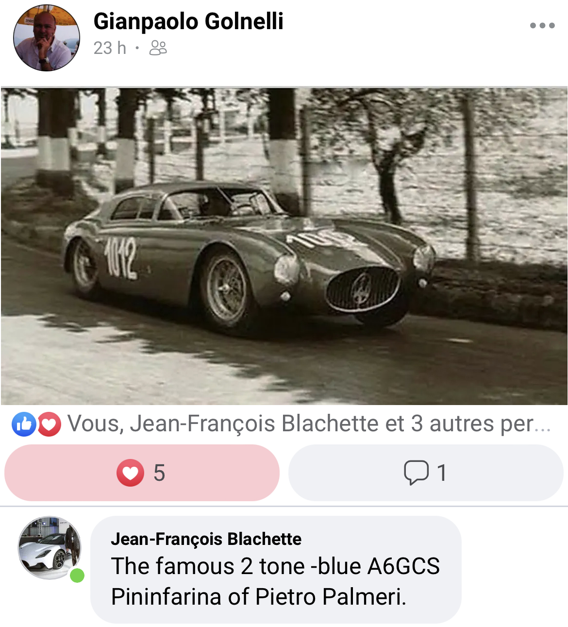 Le dédicace de Luigi Musso est intéressante : "cosa farà Fiamma ? Que fait Fiamma Breschi, sa petite fiancée, en ce moment ? Probablement ce à quoi il était en train de penser avant le top départ de cette course sur A6GCS/53.