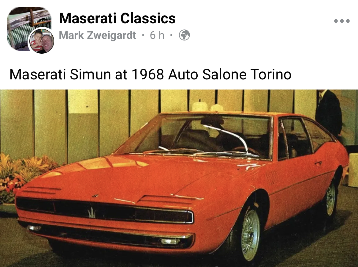 Eh oui, la Simun dessinée par Giorgetto Giugiaro, fut présentée en orange. Puis cet exemplaire unique fut peint en bleu foncé. Il servit de "daily" plus tard à Alexandro De Tomaso !!!