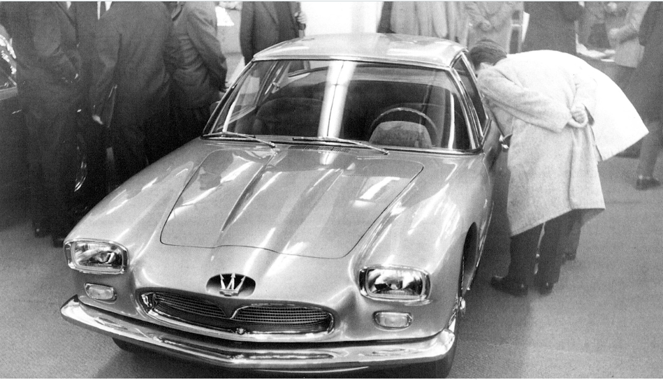 Guerino Bertocchi à l’arrière du « mostro » comme on surnommait la 450S fermée à Carrosserie dessinée par Franck Costen et réalisée par Zagato.
