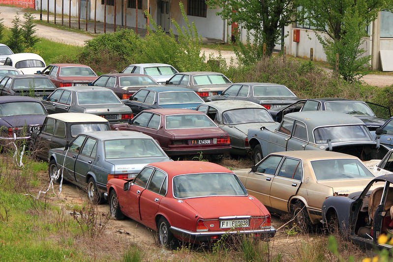 C'est étonnant de voir que ce cimetière ne comporte presque que des Jaguar et des Maserati (je compte 5 Jag: trois Series, une XJ et une Mk2; et plein de biturbos!).