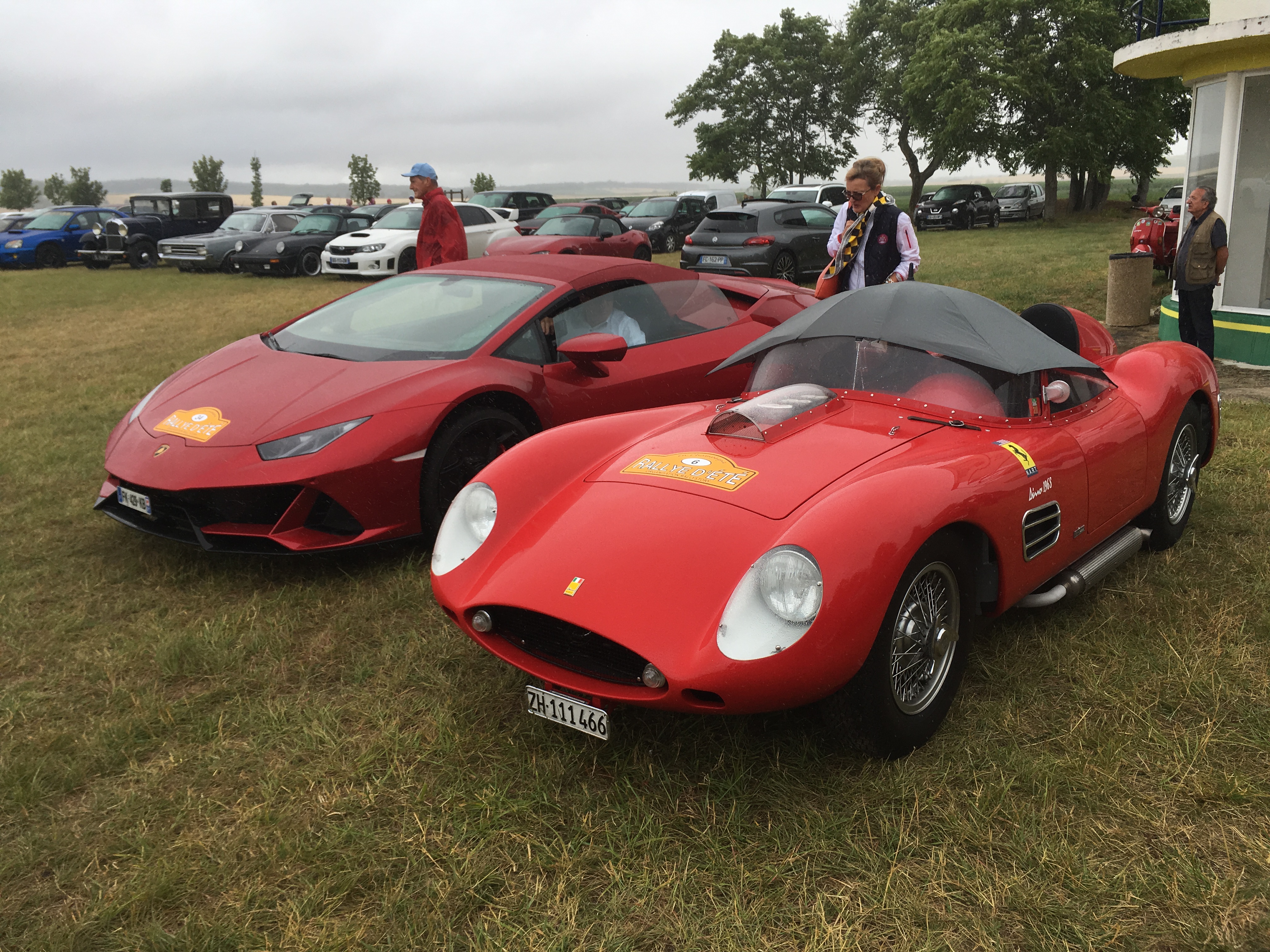 Arrivée, je retrouve la 1600 GT de l'ami Remy. Les visiteurs... Quelques autos du groupe... Huracan spider, et Dino "Fantuzzi" 196 S helvète.