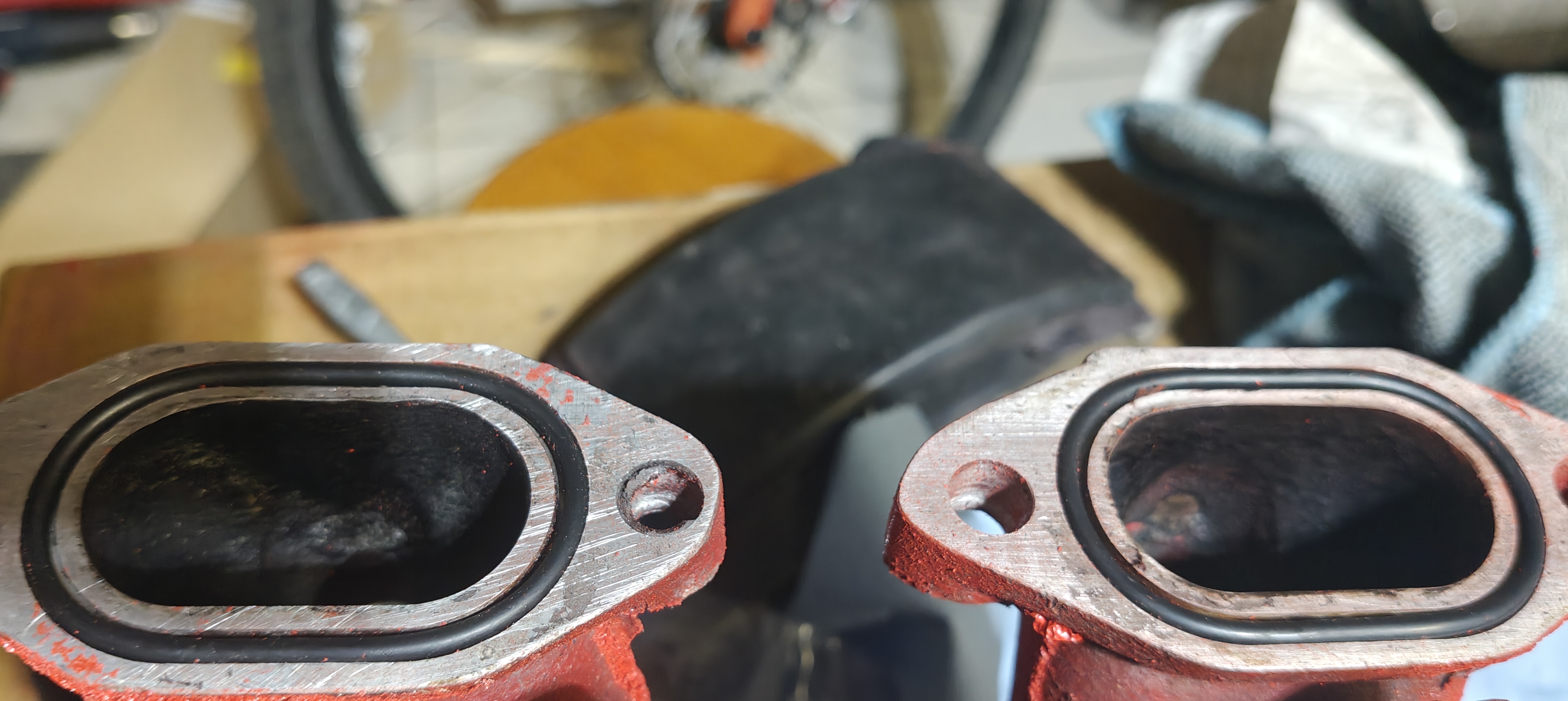 Remontage des couvre culasses, avec ici aussi nouveaux joints (joint corde pour le couvre culasse et joint de puit de bougie, ici aussi pareil, les vieux joints étaient tout plats).