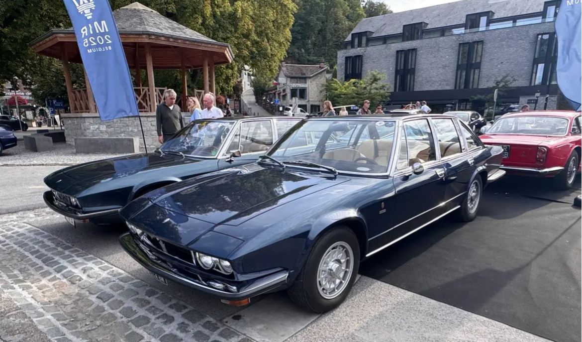 Absolument exceptionnel ! Les deux exemplaires de Quattroporte II Frua sont réunis pour le Maserati Internationnal Racing 2025 en Belgique : l’un (celui de gauche) fut réalisé par Pietro Frua en 1971 pour le roi Juan Carlos d’Espagne, l’autre (celui de droite) en 1974 pour l’Aga Khan qui était un excellent client Maserati. Cette sculpture raffinée reposait sur une base d’Indy 4.7 litres pour celle de 1971 et 4.9 litres pour celle de 1974.