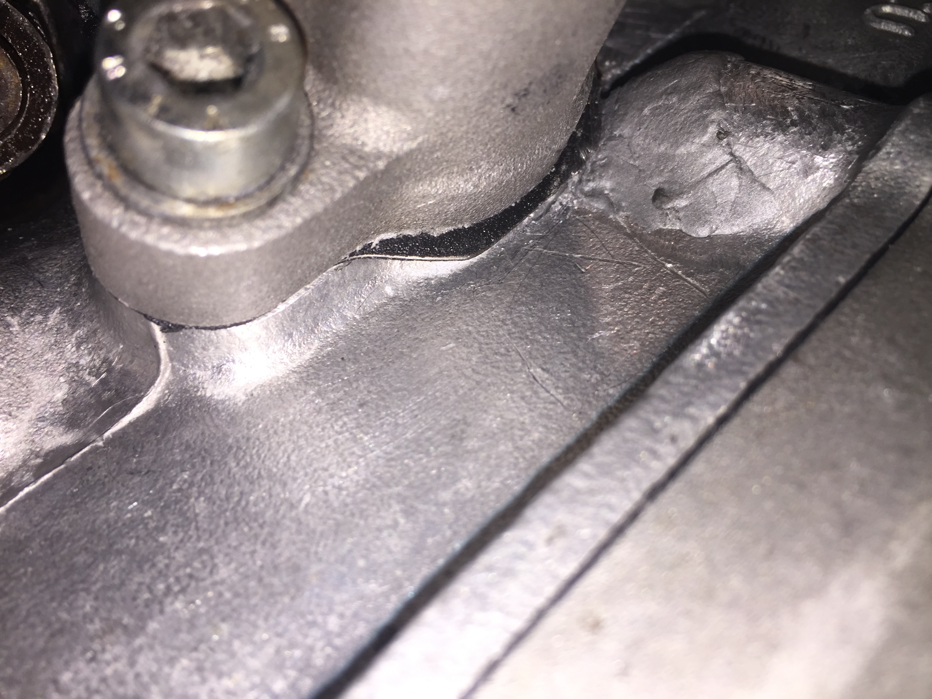Cette platine est le récupérateur des vapeurs d’huile, il y en a une par culasse. Cet alliage est tout à fait soudable. Il existe des baguettes de soudure que tu trouves dans le commerce et que tu utilises avec un simple bleuet de chez Camping gaz et les soudures tiennent. Si c’est accessible, cela peut être fait même sans rien démonter.