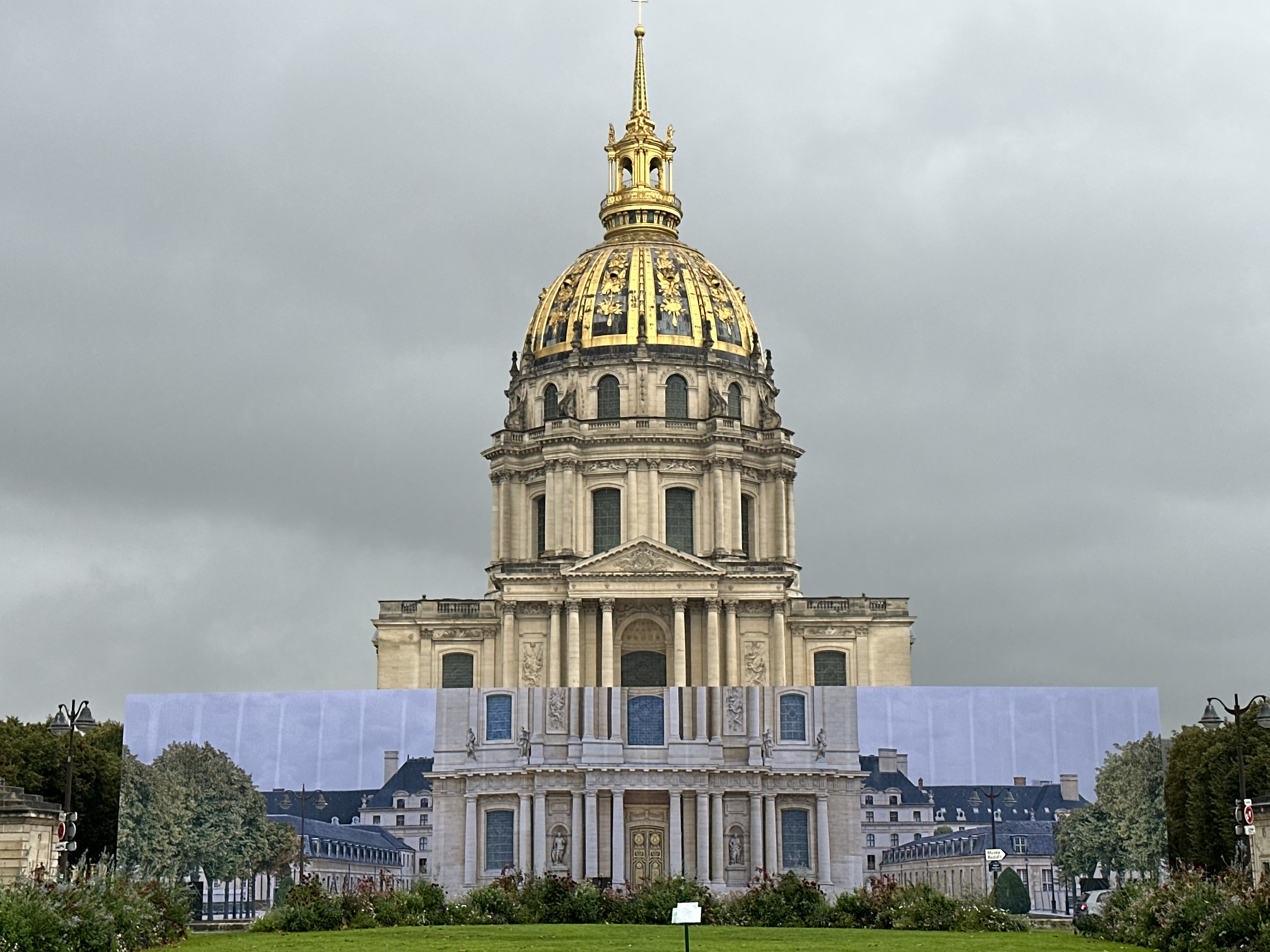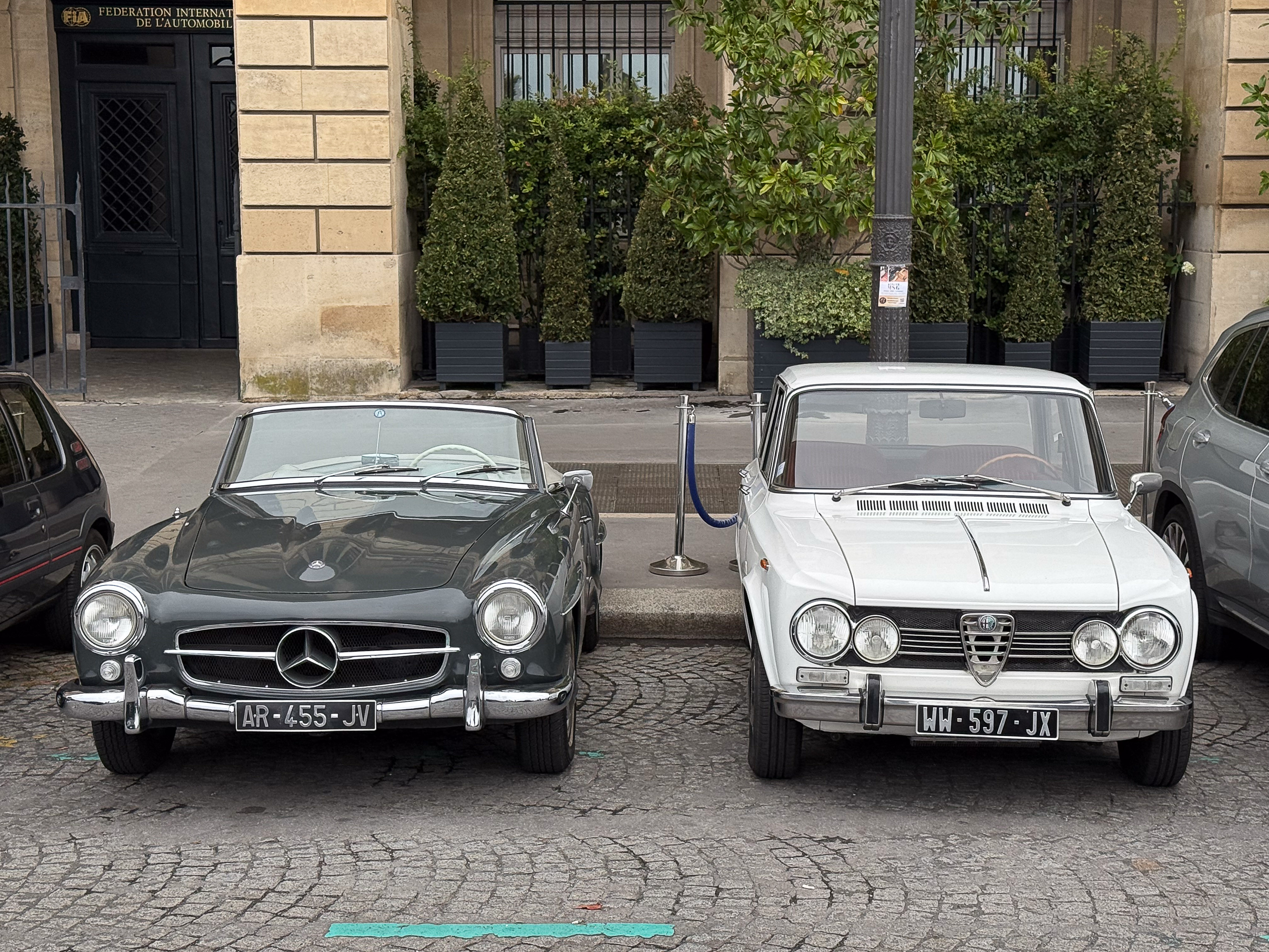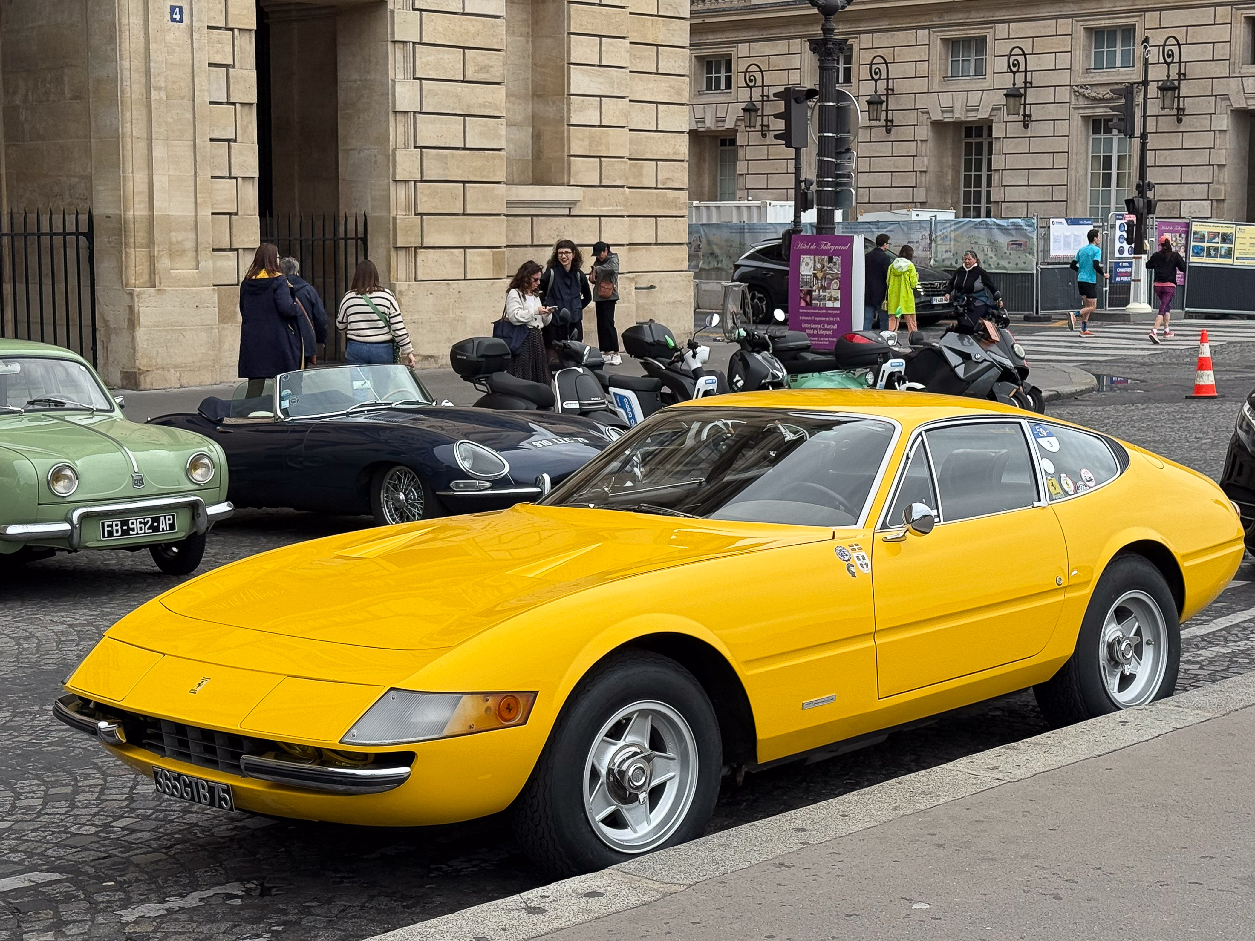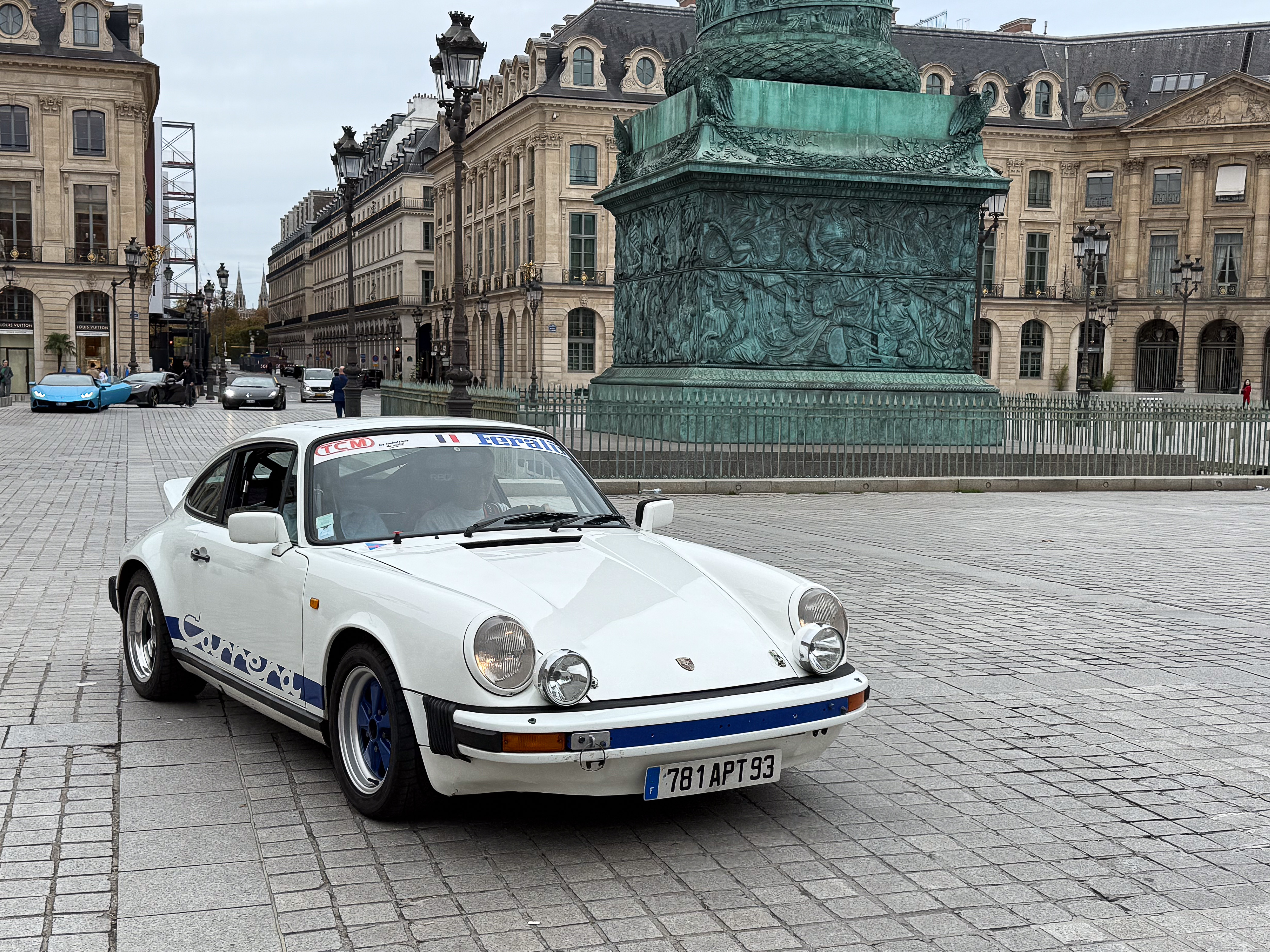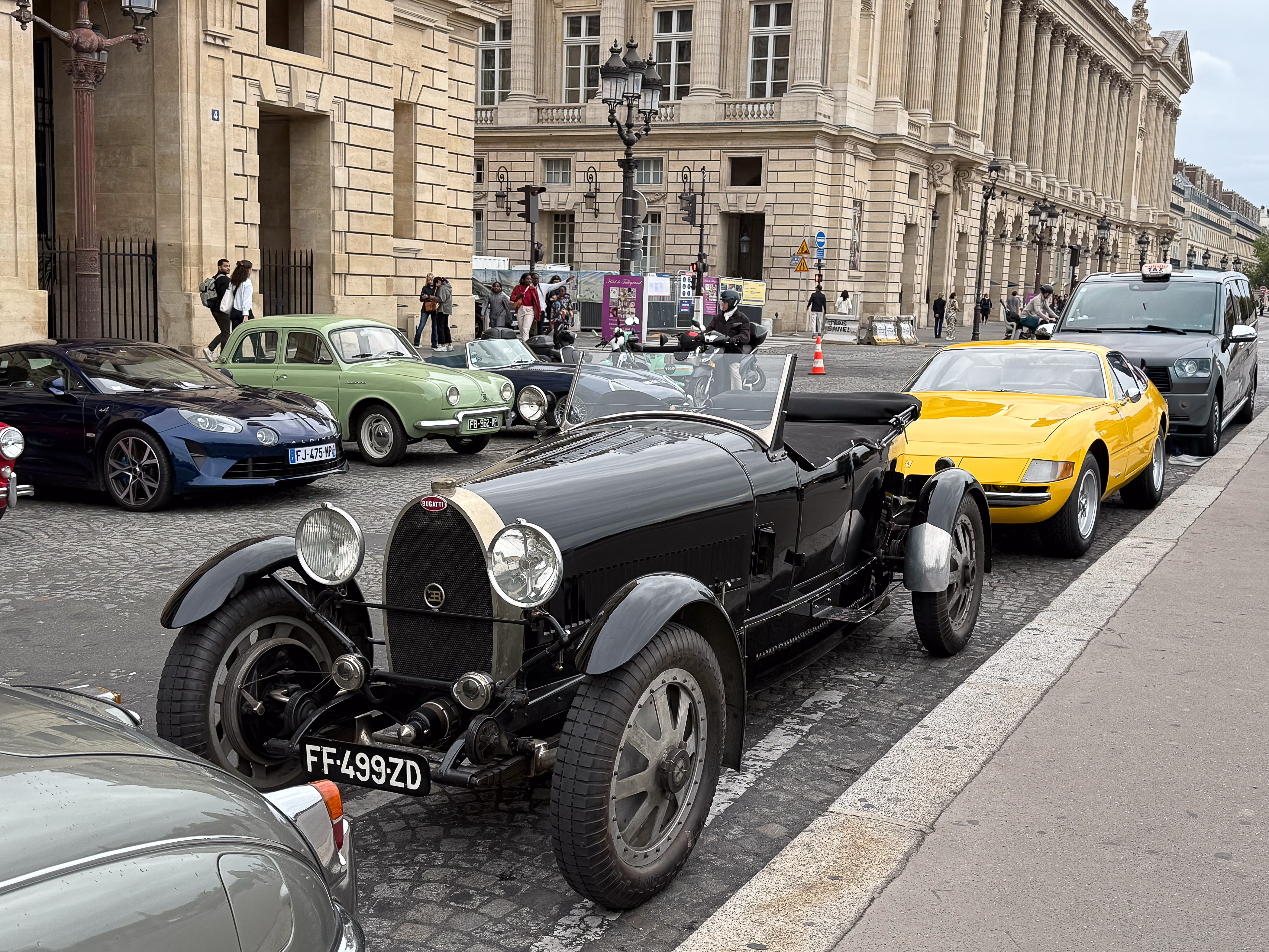 Quelques voitures aux Invalides avec La traversée de Paris.