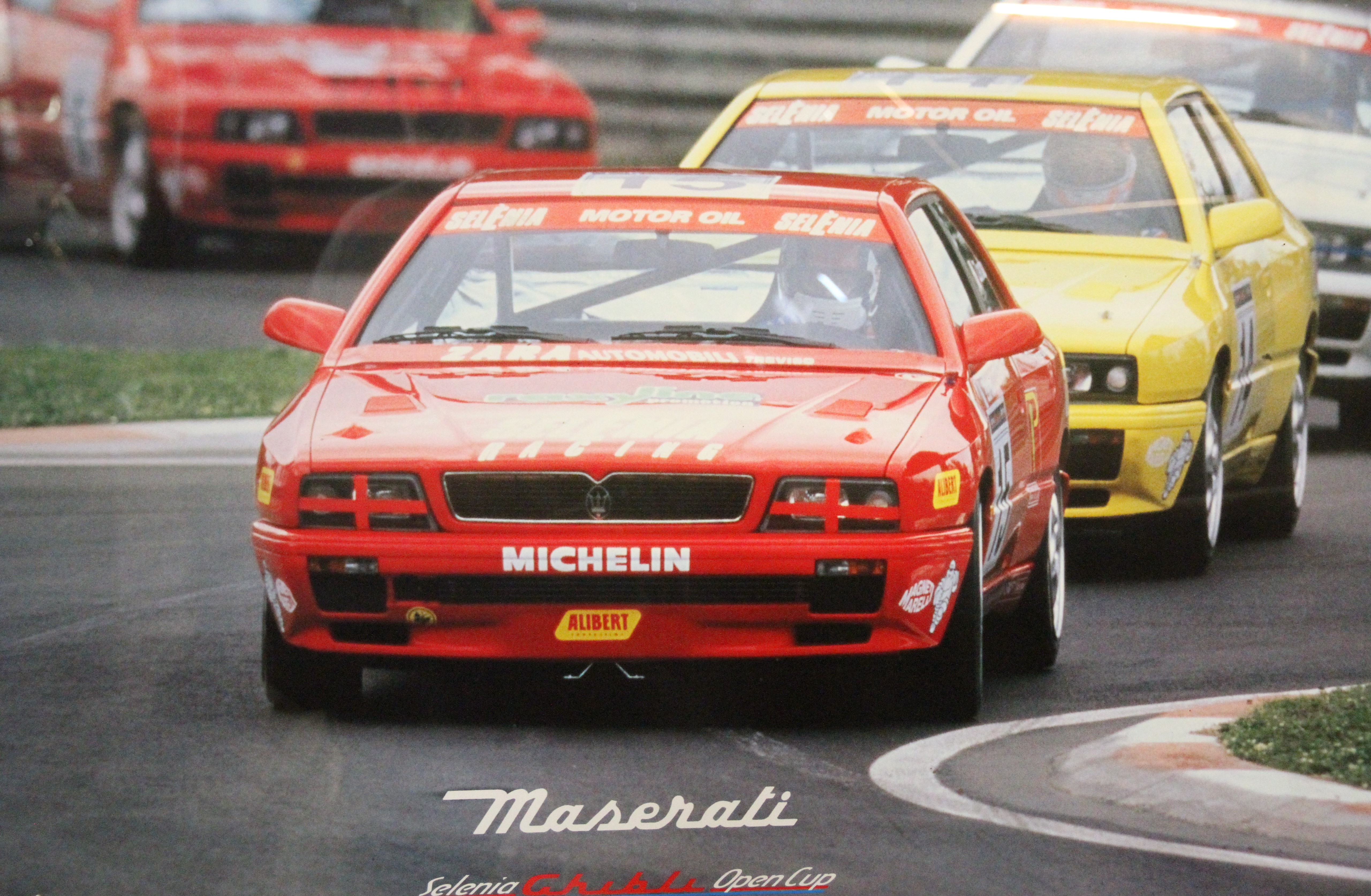 Mon ami Maxime Joly dans l"automobile sportive" nous précise que " la Ghibli Open Cup, préparée chez Alfa Corse, était munie d'un arceau, d'un siège baquet Sparco avec harnais cinq points, d'un volant spécifique Momo, d'un levier de vitesse et de pédales en aluminium, d'un extincteur automatique, d'entrées d'air en carbone et pour la saison 1995 de jantes Speedline 17 pouces montées avec des slicks Michelin Pilot SX".