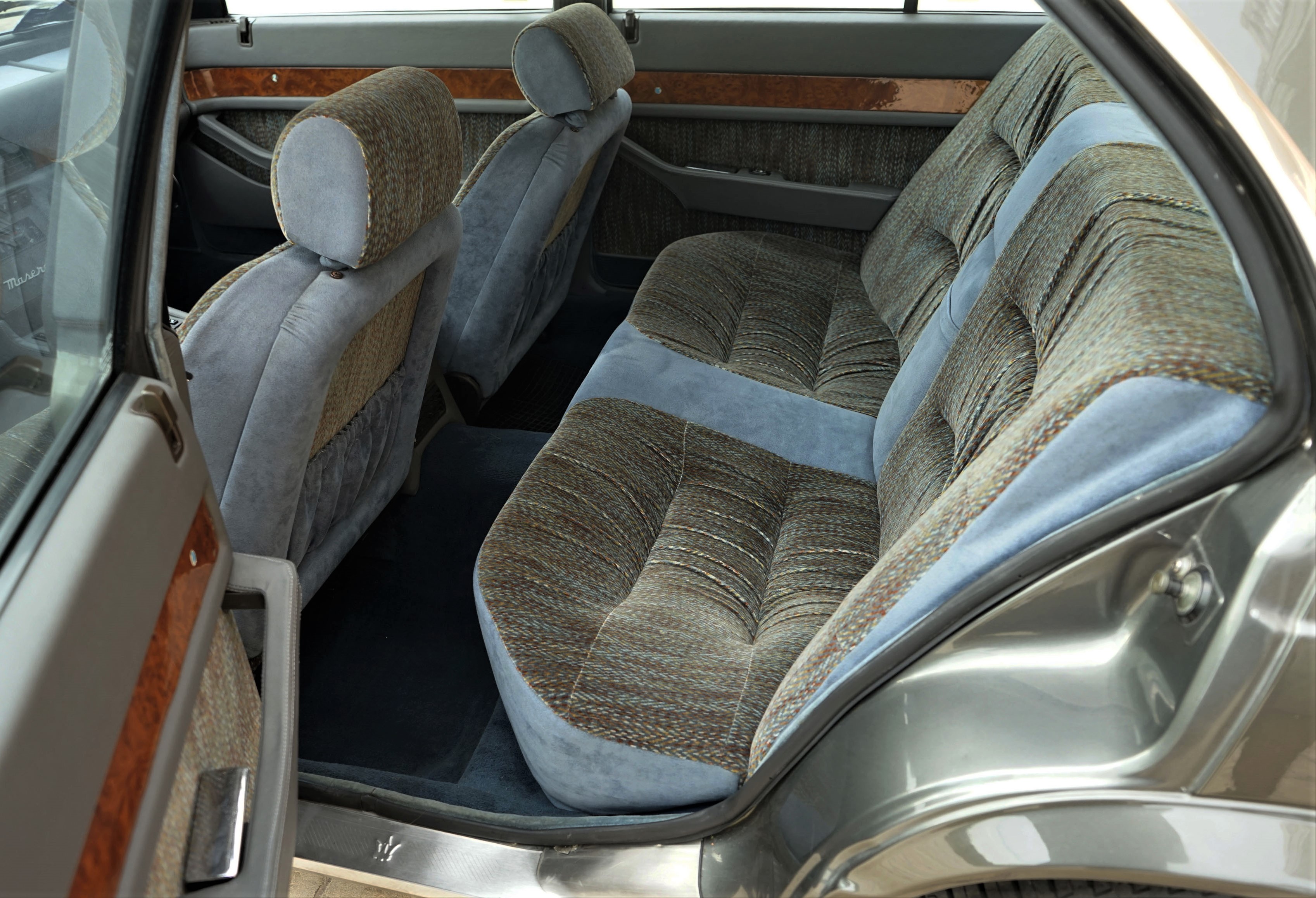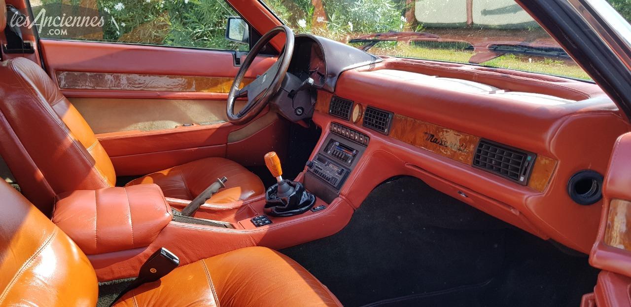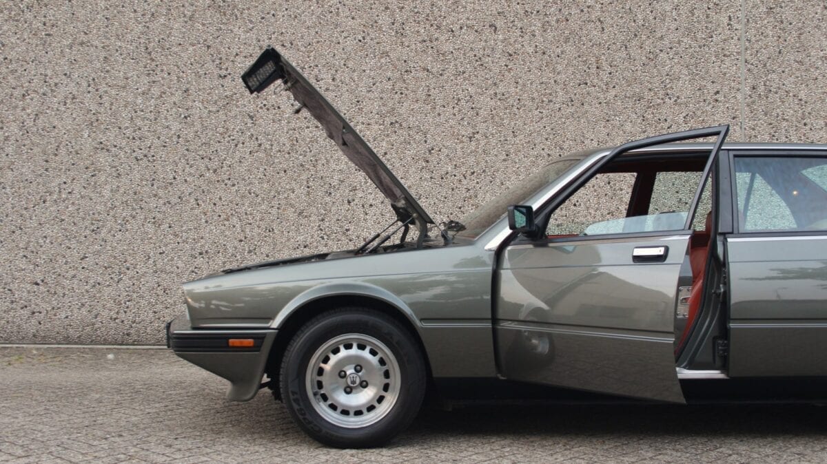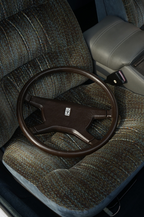 Dans l’épopée Biturbo, la 425 a ainsi inauguré pas mal de choses : les 4 portes bien-sûr mais aussi l’appellation numérique (425), le tableau de bord arrondi, la montre Lassale, l’inscription Maserati sur le (vrai) bois de la planche de bord et de nouvelles poignées de portières :