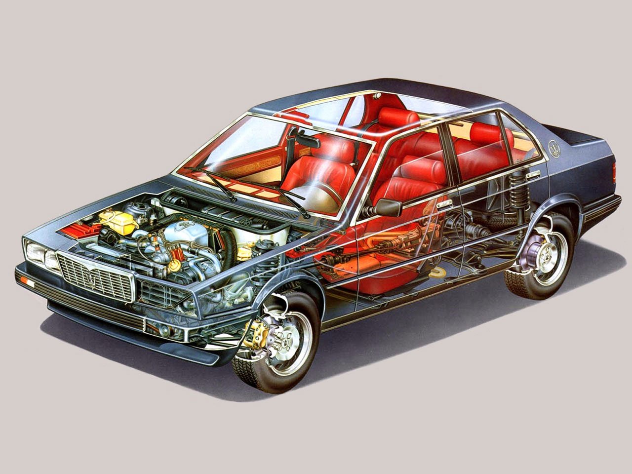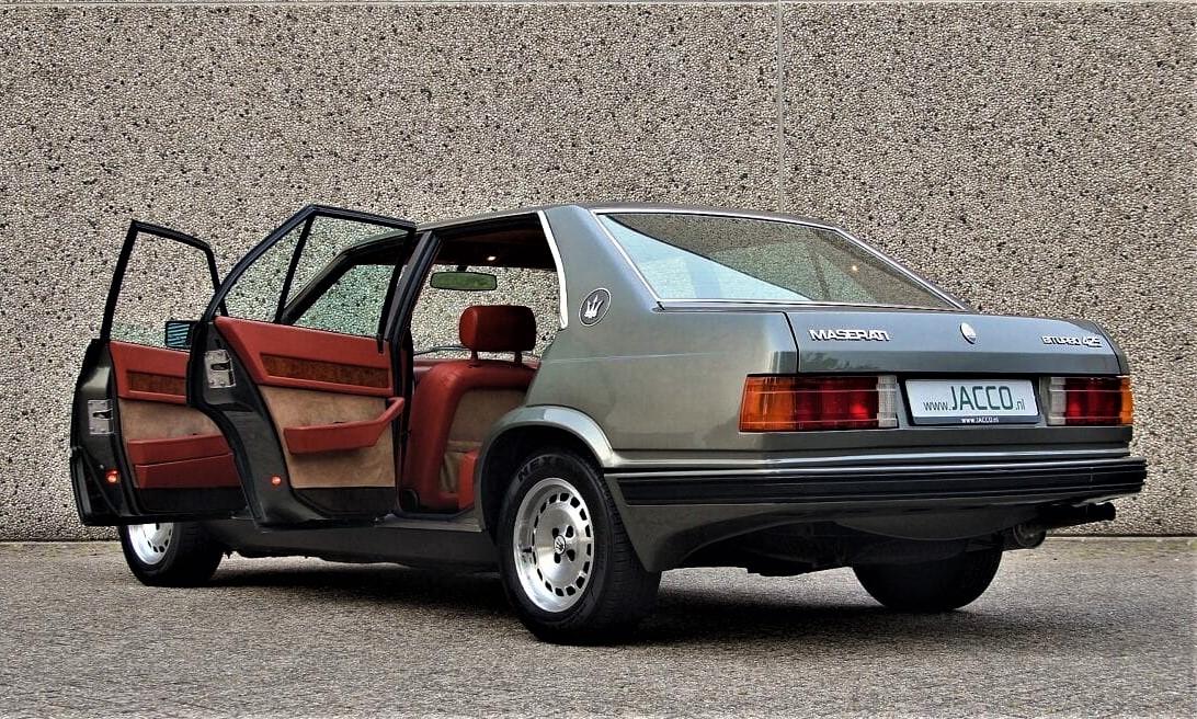 Les jantes de cette berline sont les mêmes que celles de la Biturbo S mais peintes initialement en un peu moins foncé et uniquement sur la périphérie. Elles ne seront plus peintes à partir de 1985.