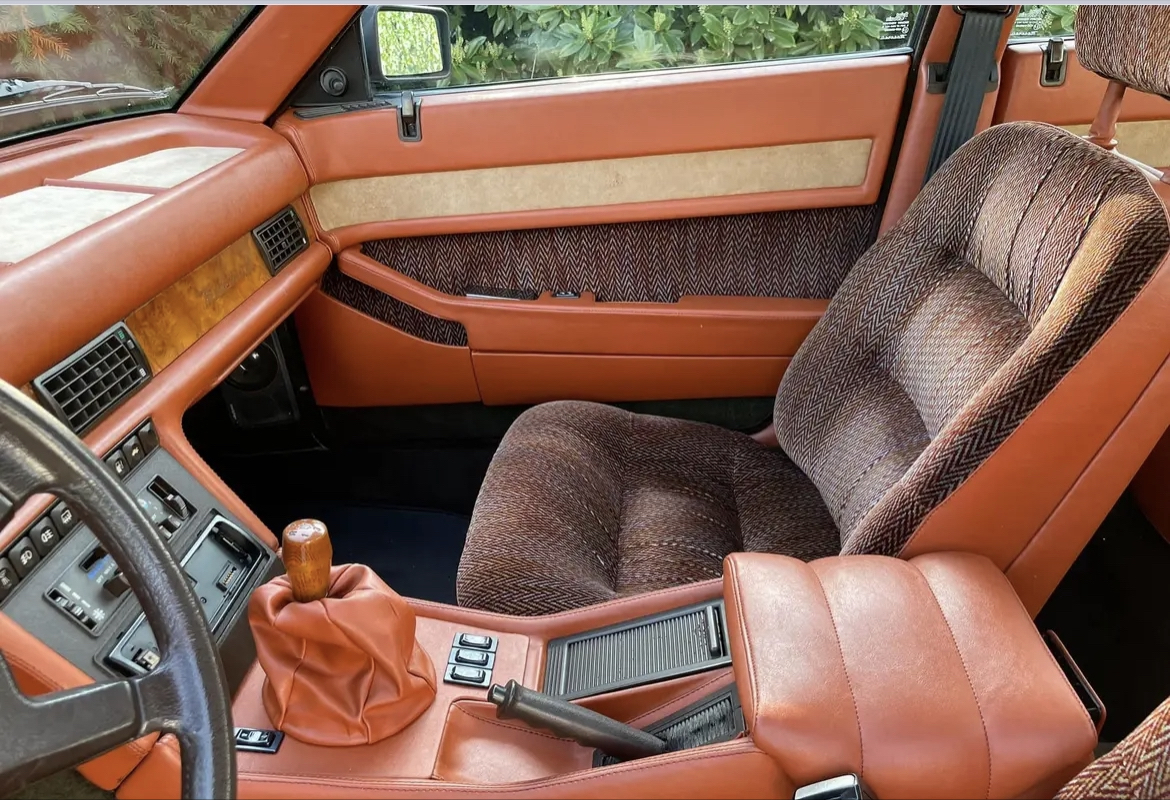 L’intérieur des 420 S, rosso ou argento, reprend l’intérieur Missoni des coupés Biturbo S avec le cuir orangé sur les assises et l’alcantara clair sur les côtés, sans boiseries sauf sur le tableau de bord :