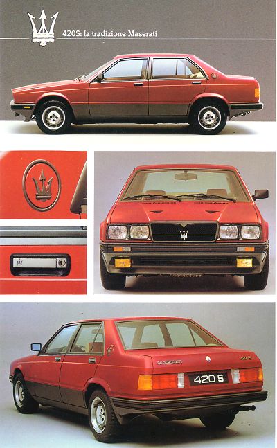 La même année 1985, Maserati présente la berline 4 portes 2 litres la plus performante de l'époque : la 420 S qui reçoit le 2 litres Biturbo carburateur avec échangeurs du coupé Biturbo S poussé de 205 à 210 cv. Les seulement 1175 kg de cette berline compacte très sportive sont propulsés du 0 à 100 km/h en 6.2 secondes (6 secondes en Ferrari 328). Les prises Naca sur le capot apportent de l'air frais aux échangeurs et identifient la 420 S par rapport à la 420.