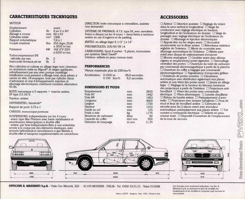 Maserati 420 Si : V6 2 Litres Biturbo injection 220 cv 225 km/h 296 000 francs français