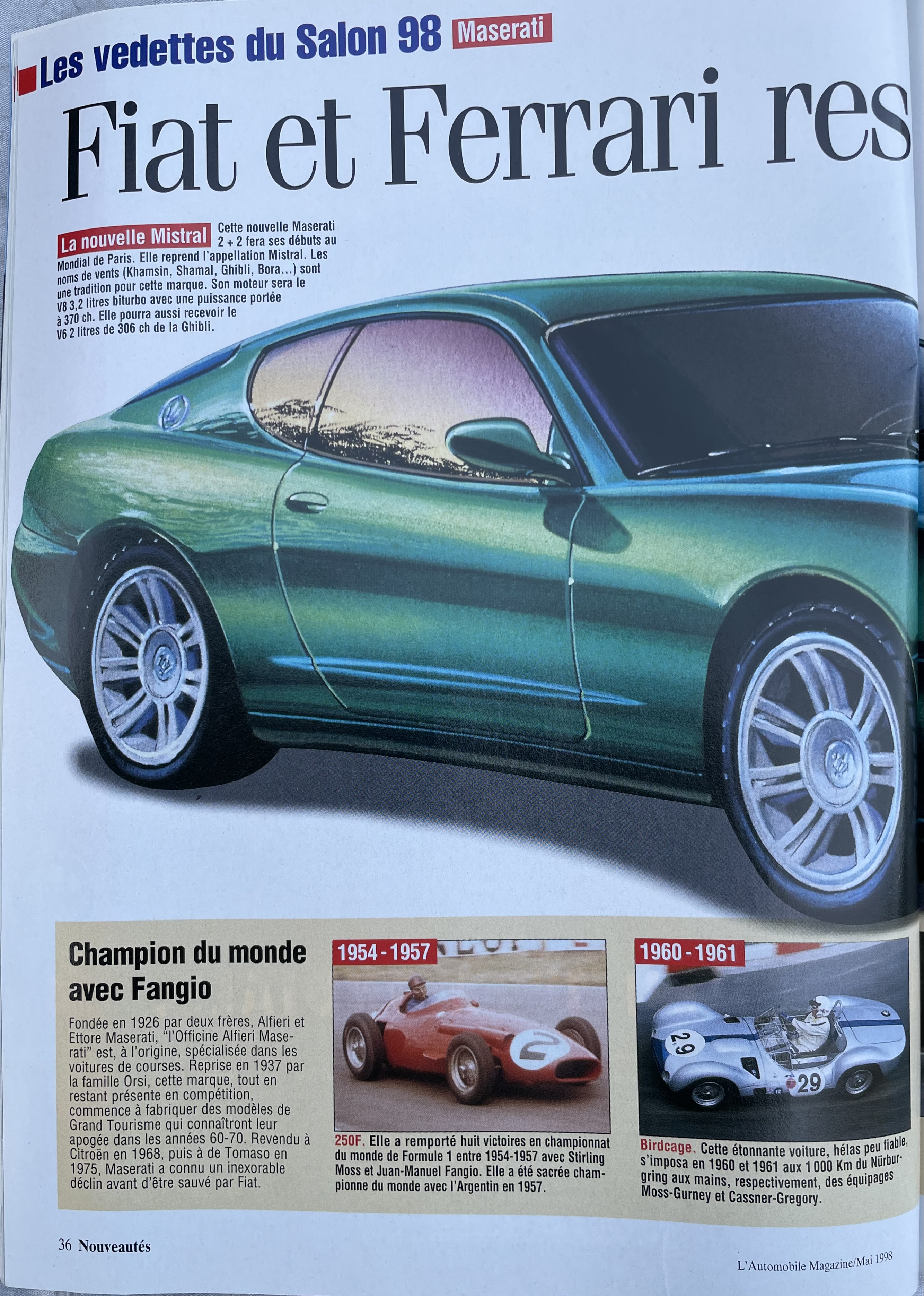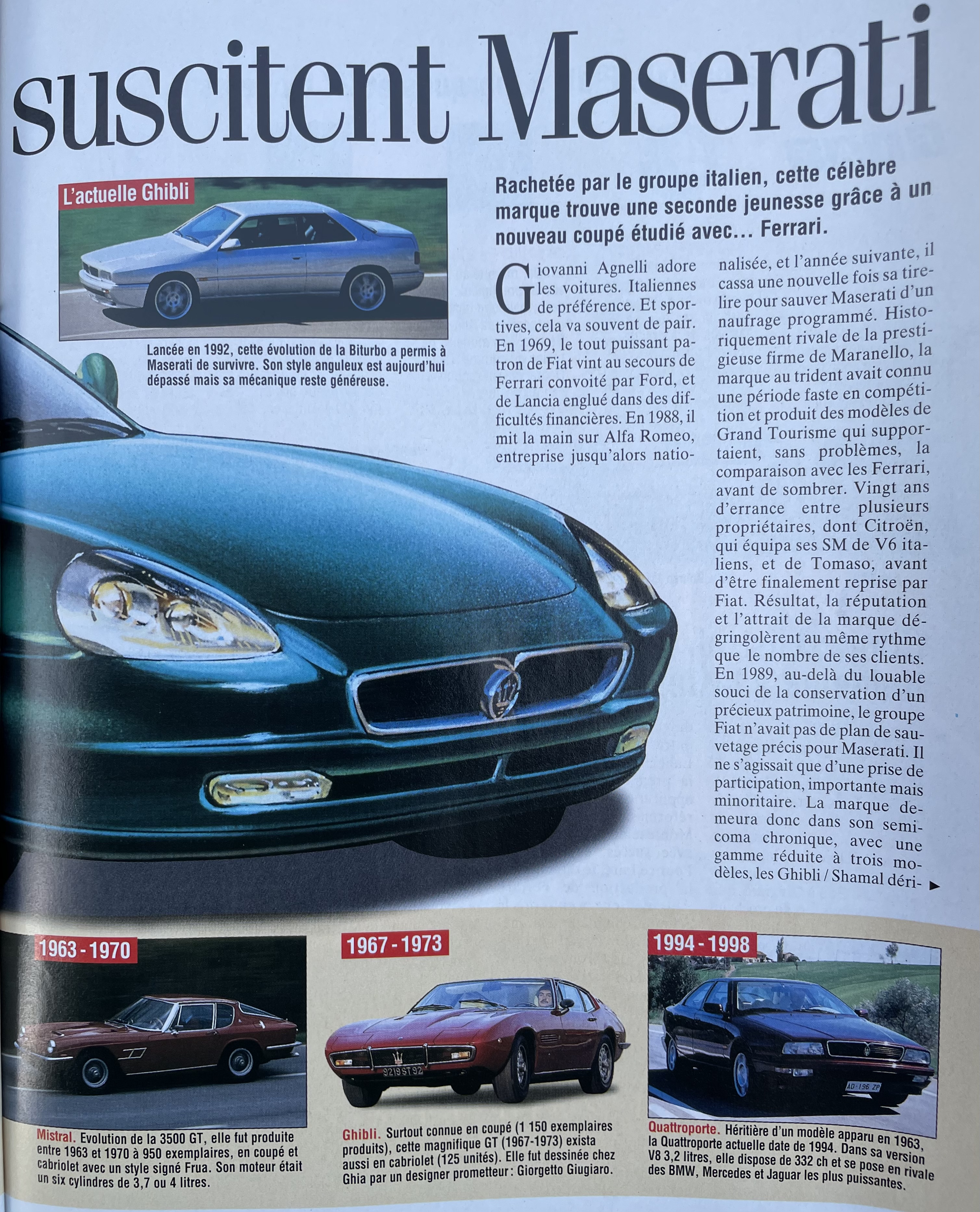 En rangeant un vieux meuble, je suis enfin tombé sur cet article de mai 1998 (pile 25 ans) évoquant la sortie prochaine d’une nouvelle Maserati, la première sous gestion Ferrari :
