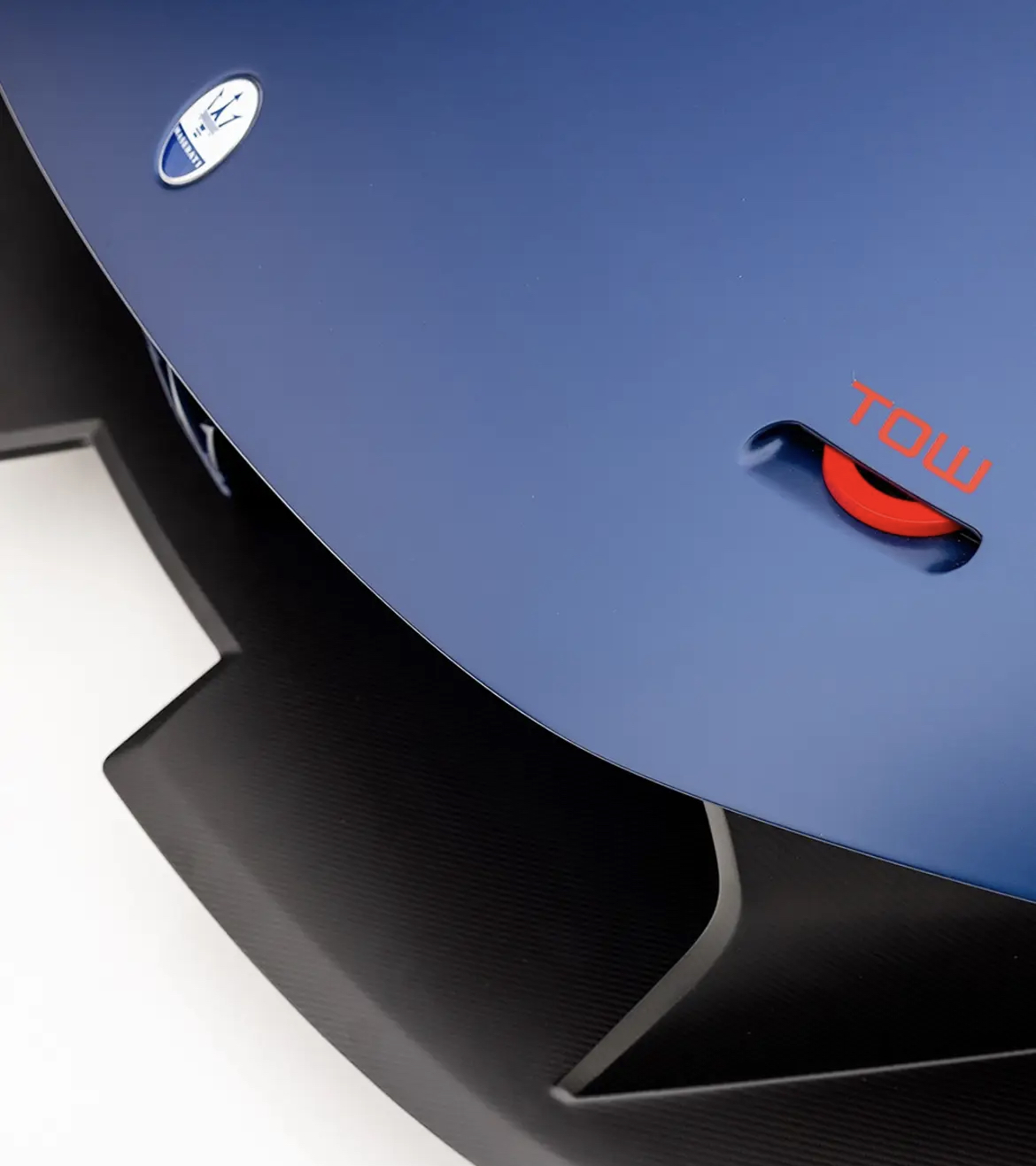 Ce bleu mat est vraiment magnifique et rappelle le bleu des Maserati de Formule E. La Rossa, c’est la Ferrari de course, la Blu, c’est la Maserati. Les couleurs sont distribuées !