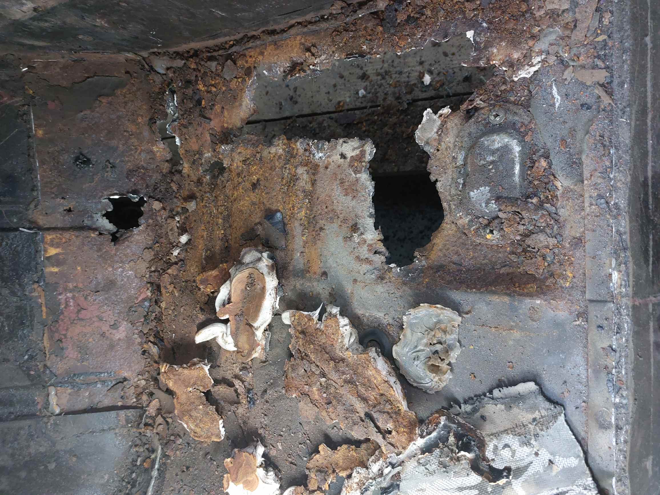 Comme je l'avais supposé à l'époque la voiture a dû rester immobilisée pendant un certain temps et probablement avec des fuites d'eau dans la cabine.