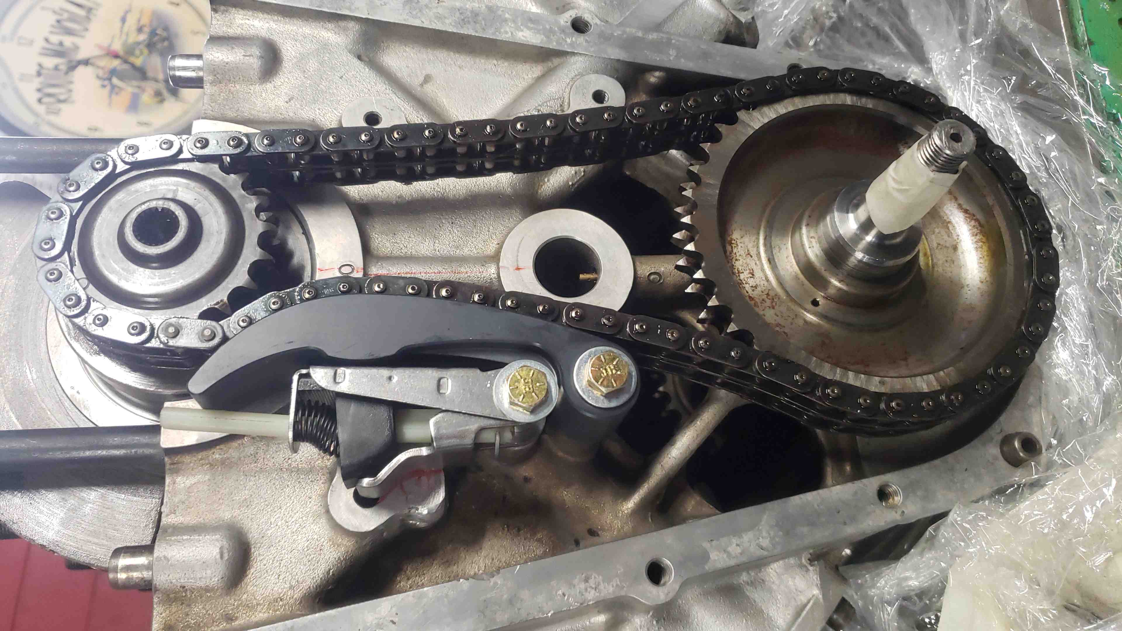 Du coup ce matin j'ai remonté la chaine qui relie l'arbre au vilebrequin.