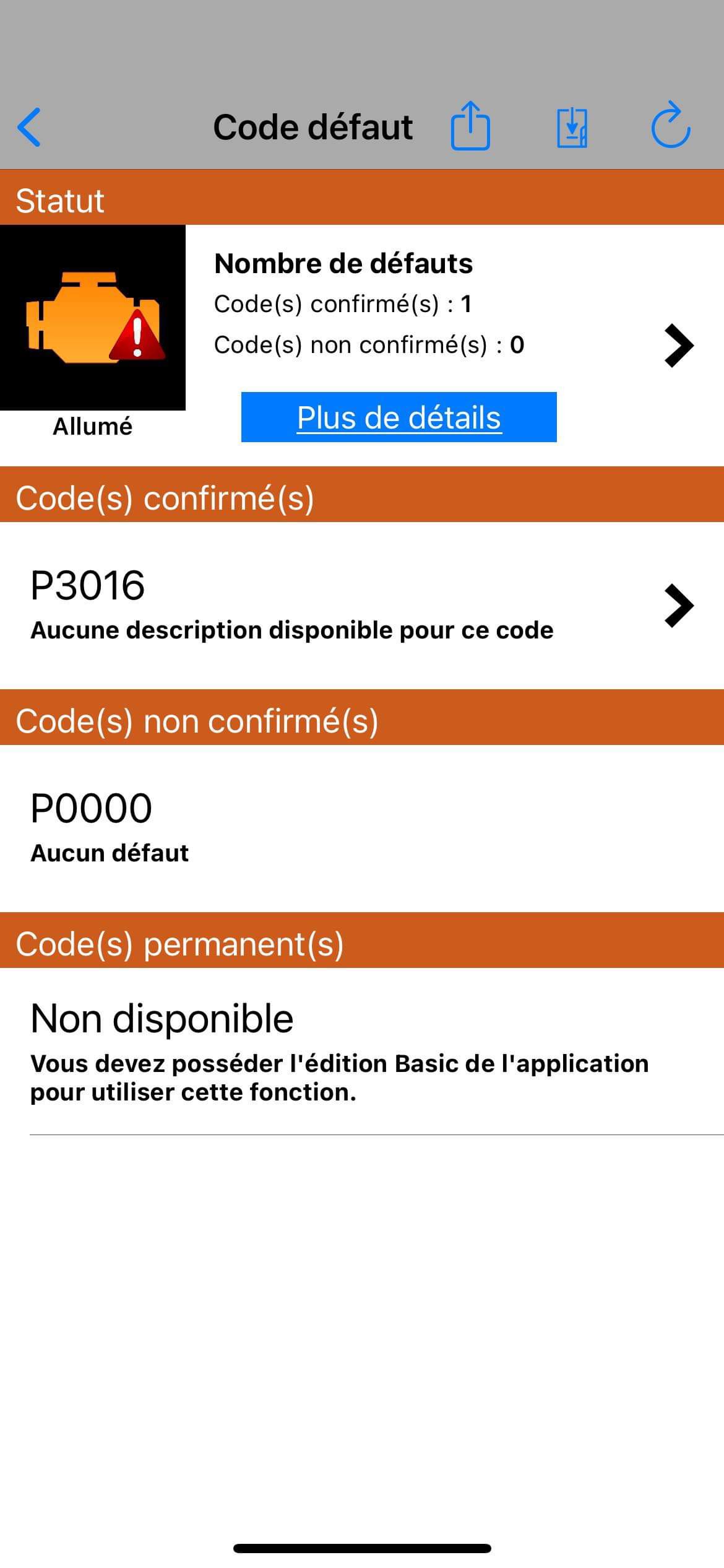En mettant le lecteur ODB, j’ai ces codes erreurs :