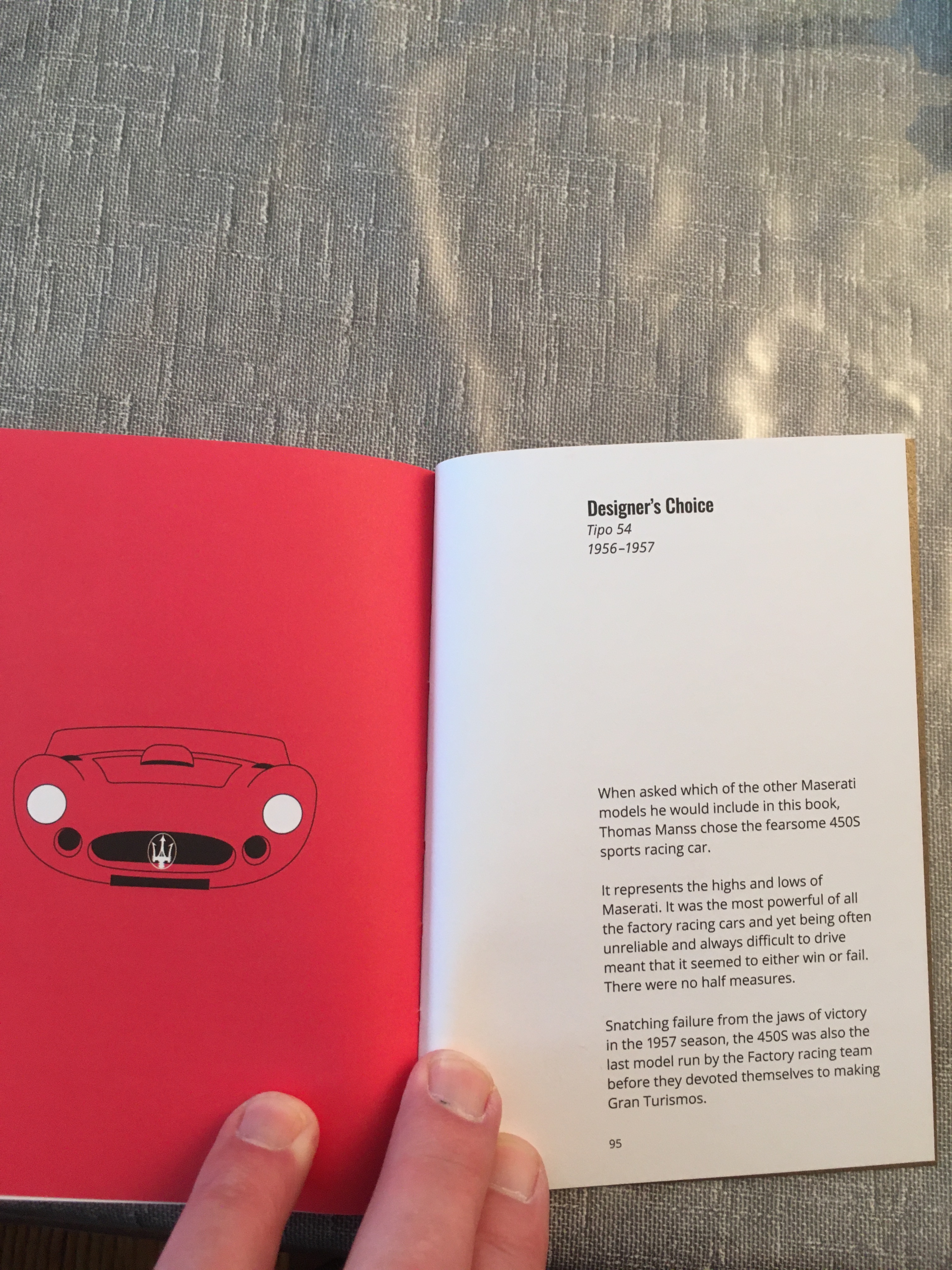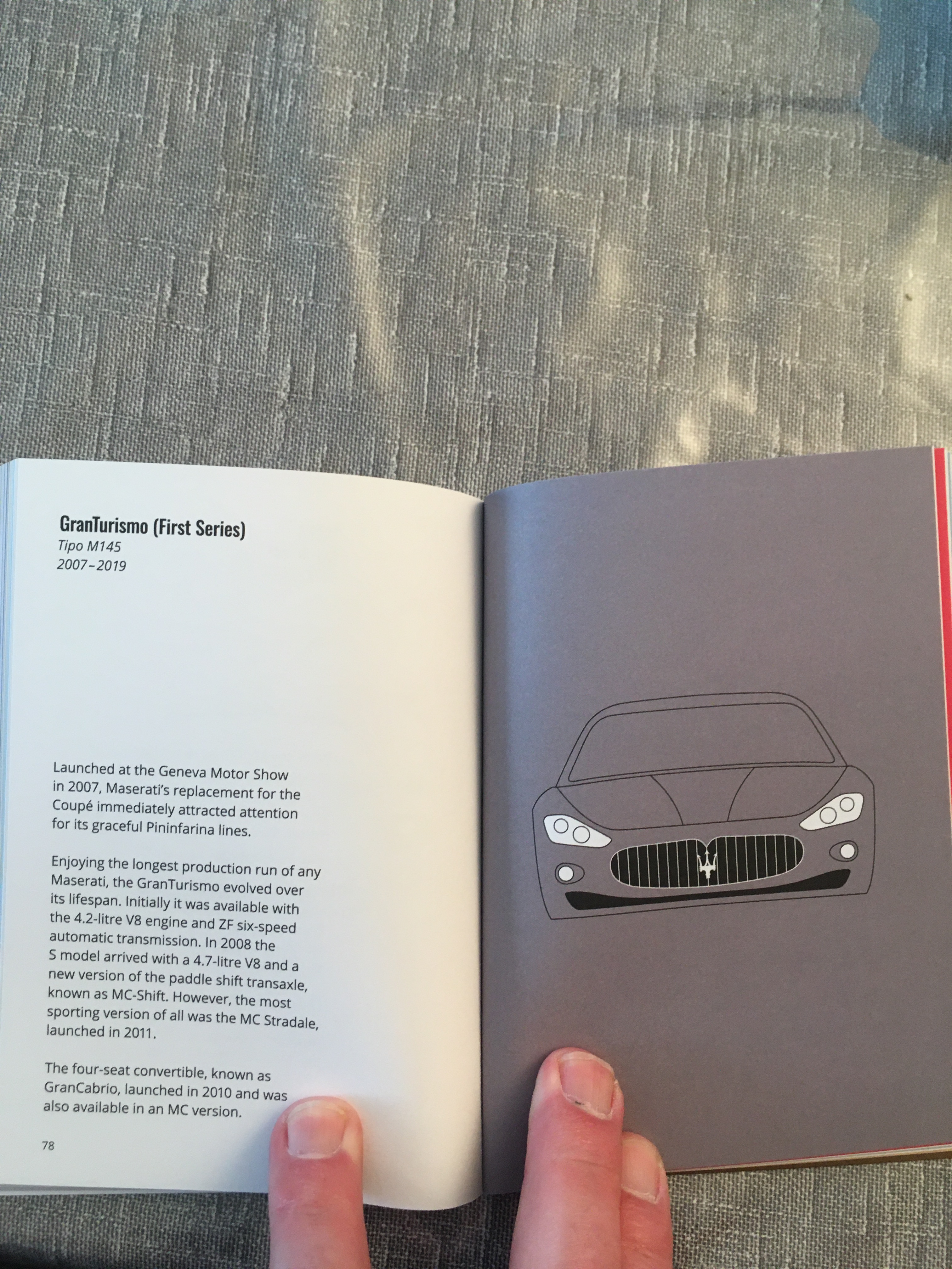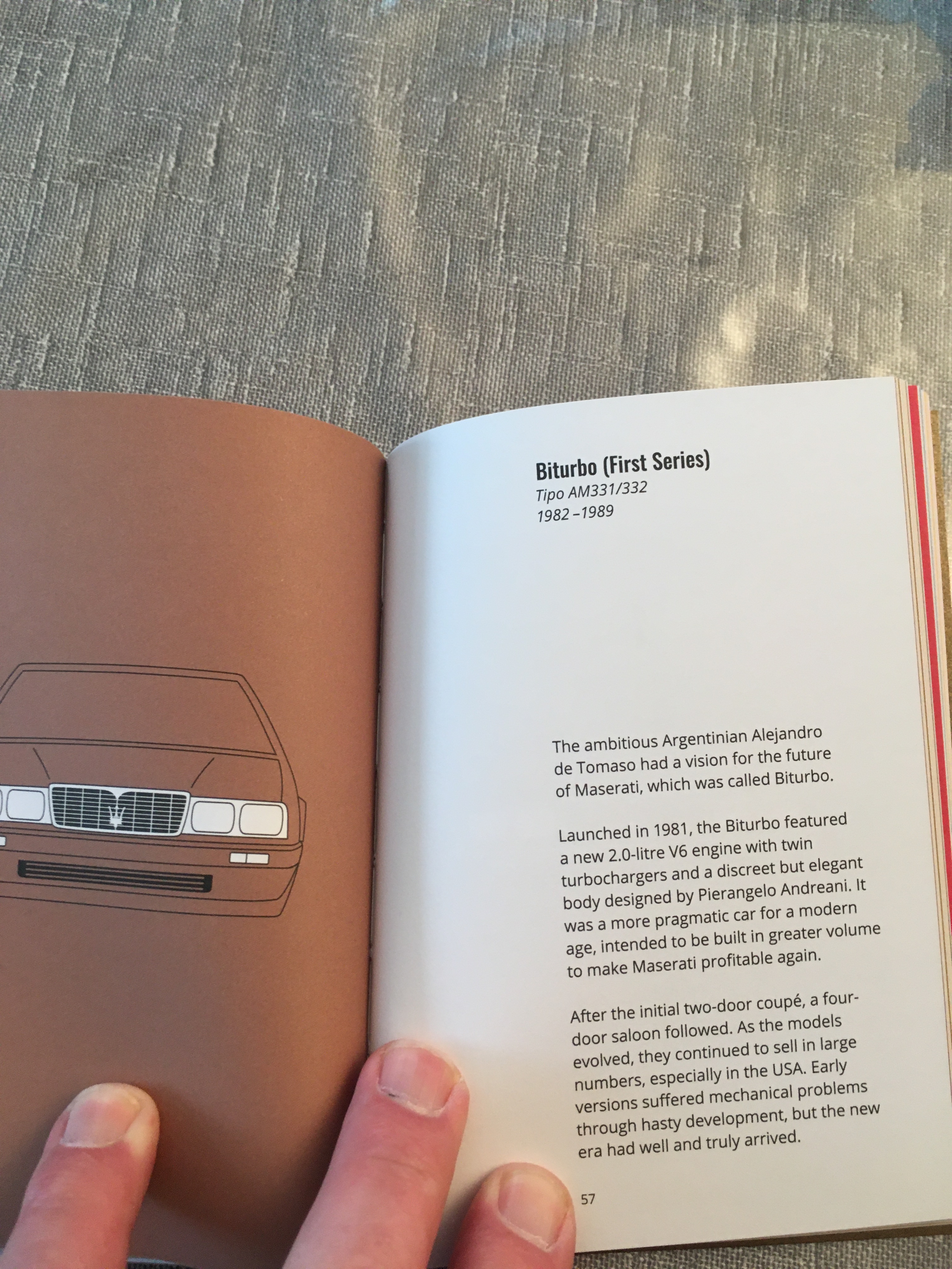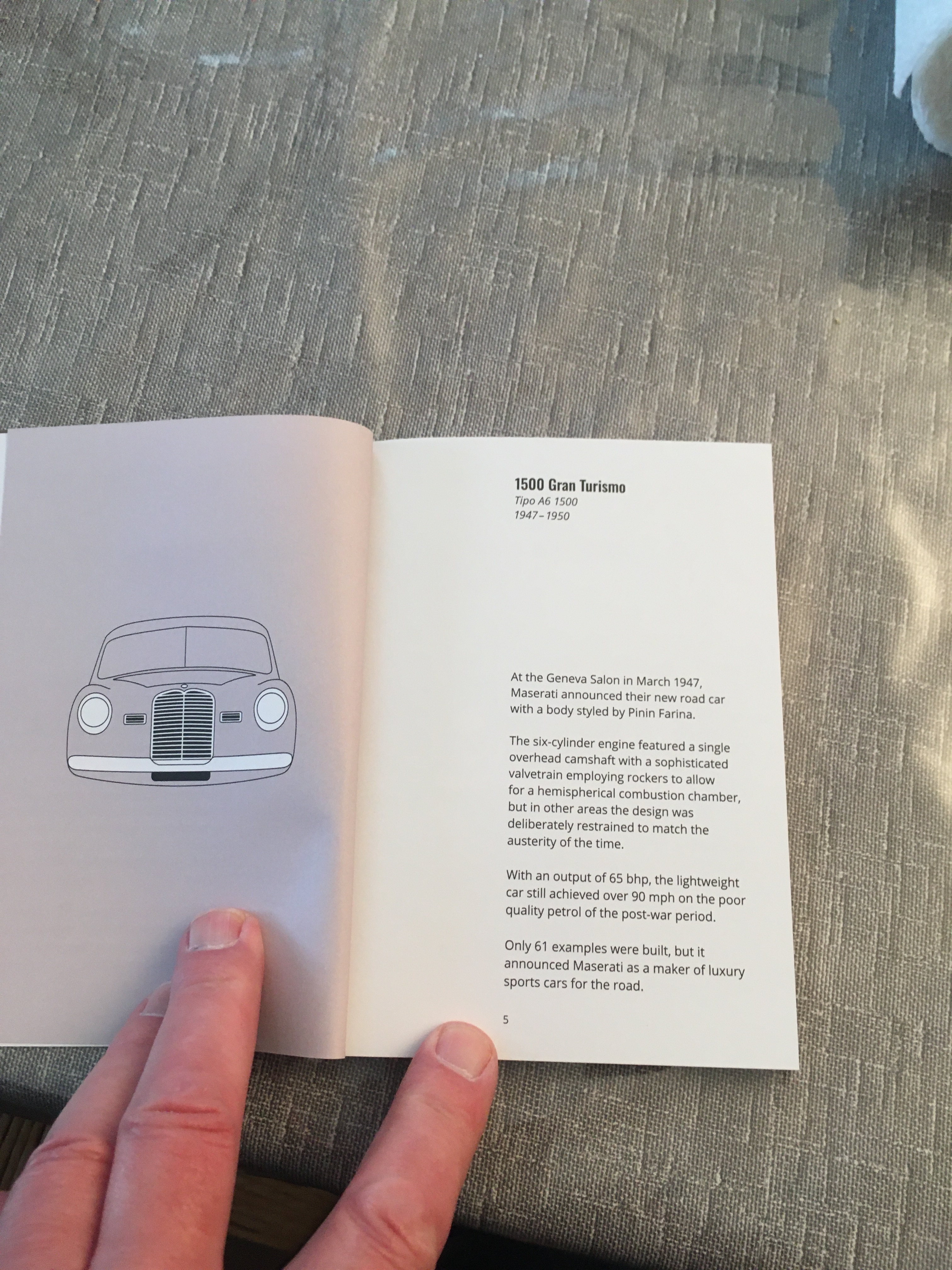 Bref: un petit livret retraçant les 110 ans de Maserati, avec pour chaque modèle une image de l'avant stylisé, et un petit texte:
