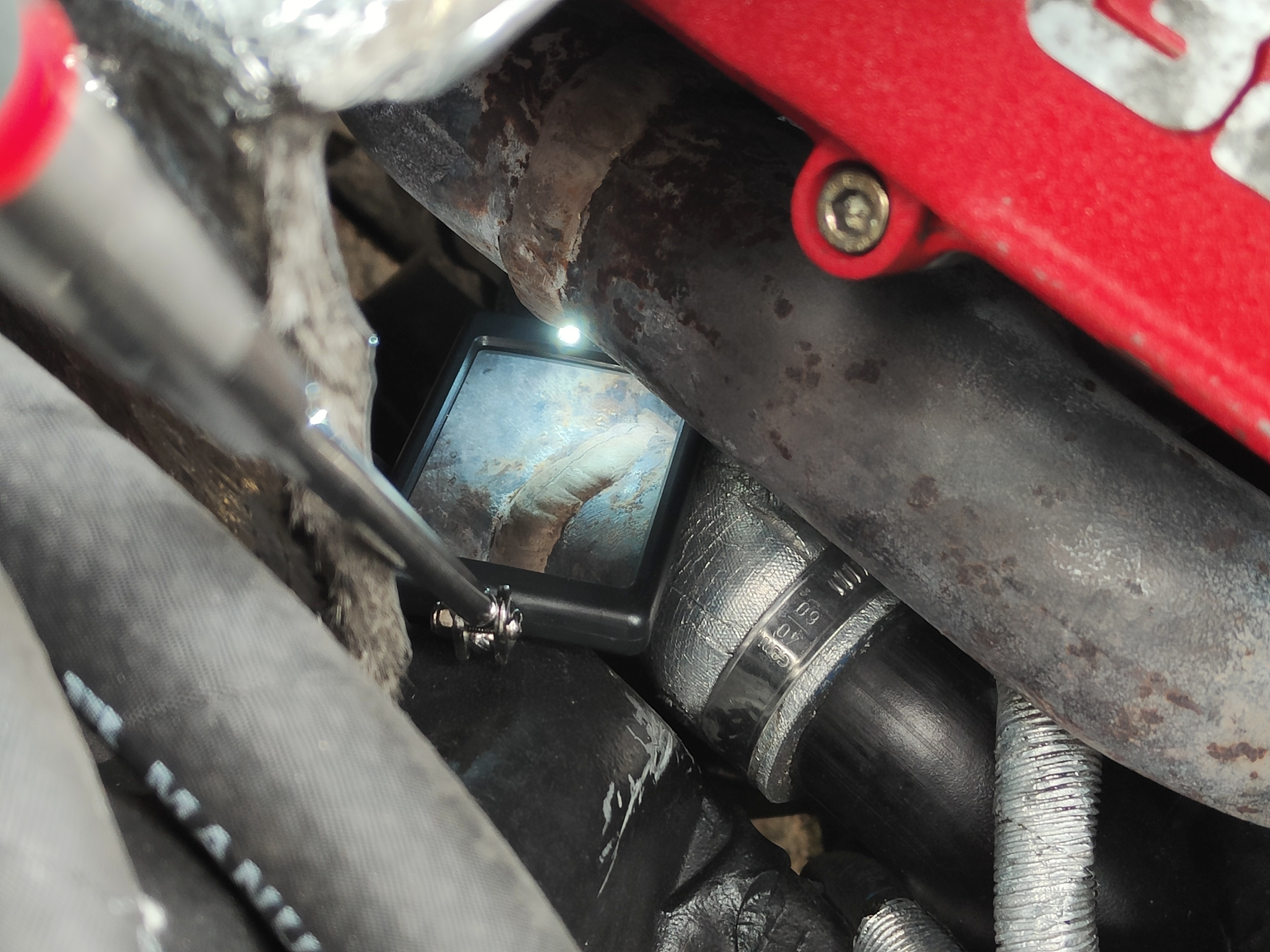 Le collecteur droit (côté passagé) a été ressoudé précédemment, j'ai découvert des jolies cordons de soudure quelques temps après l'avoir acheté. Pour le moment pas de fuite apparente, mais je doute de la pérennité de cette réparation. Encore plus le doute semaine dernière quand j'ai eu un CheckEngine sur sonde Lambda de ce même côté (mon premier vrai check engine en 1 an). J'ai commandé une Lambda on verra après.