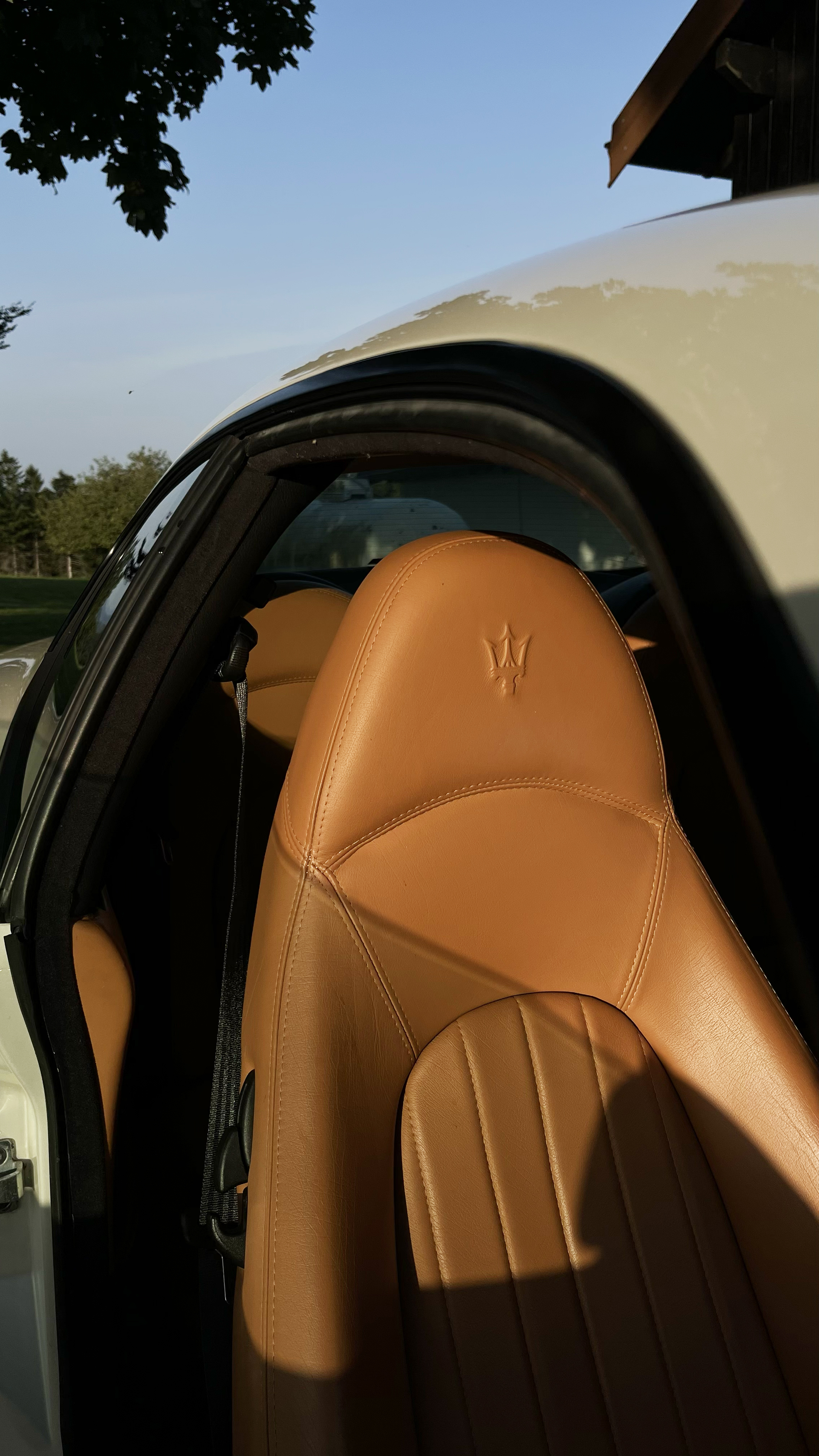 La voiture compte 57 000 km, elle est en parfait état avec un combo magnifique : Bianco Fuji intérieur Camel ! Au soleil c'est un pur bonheur, le blanc nacré lui va vraiment bien.