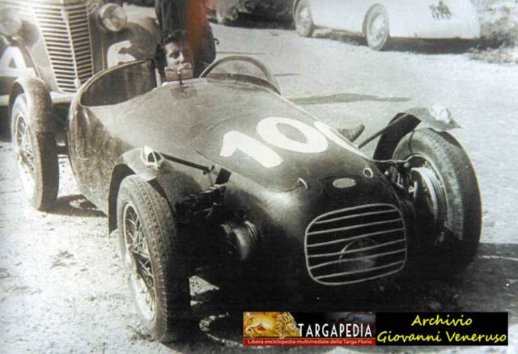 Maria Teresa toute souriante à 23 ans dans sa barquette Urania. Il faut vous imaginer la société italienne provinciale en 1949. Une jeune femme pilote de voitures de course faisait sensation et Maria Teresa fut énormément photographiée et surnommée "il Pilotino", le petit pilote, par "la Gazetta dello Sport", l'équivalent de notre "Equipe" !