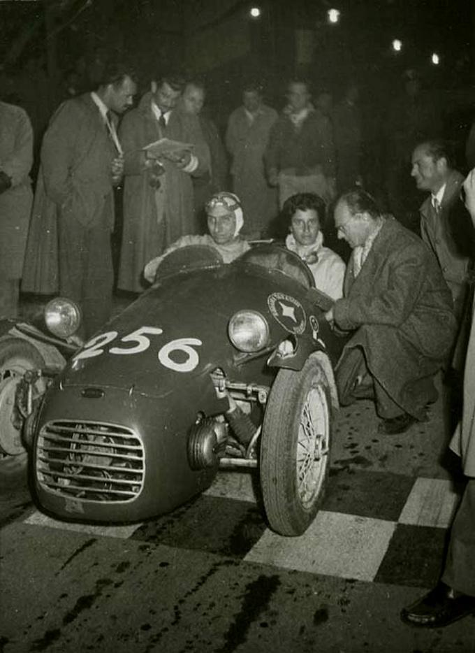 En 1950, à la soirée de gala après la dernière course de l'immense Tazio Nuvolari ( la salita Palermo-Monte Pellegrino). Tazio a remporté sa classe sur Cisitalia-Abarth ce jour-là, finissant sa carrière sur un succès. Il salue la toute jeune Maria Teresa De Filippis :
