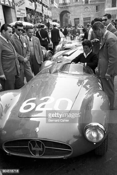 Maria Teresa De Filippis fut tellement emballée par la Maserati A6GCS/53 Centro Sud qu'elle ne tarda pas à s'offrir son propre exemplaire, avec le saute vent uniquement devant le pilote et un carrossage amovible de la place passager. Le personnage en casquette claire penché derrière Maria Teresa n'est autre que Guerino Bertocchi, le mythique "collaudatore" Maserati. Ils sont ici au départ de la Targa Florio 1955 :