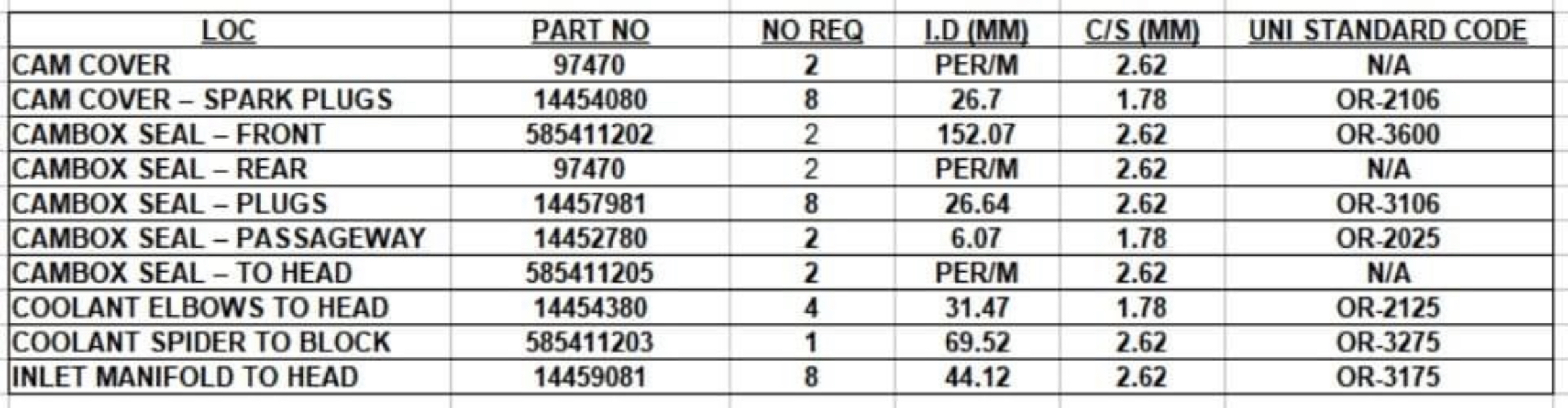 Référence des joints toriques: Pièces plus disponibles ou difficiles a trouver :