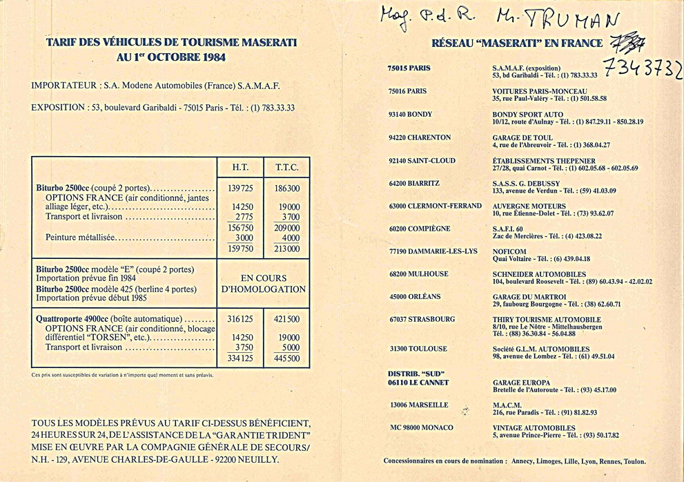 Merci pour ces précision SMART, j'imagine que Philippe évoquait le prix annoncé par de Tomaso pour la Biturbo avant son lancement commercial, et qui avait déjà subit une belle inflation lors de la publication de la première liste de prix officielle.