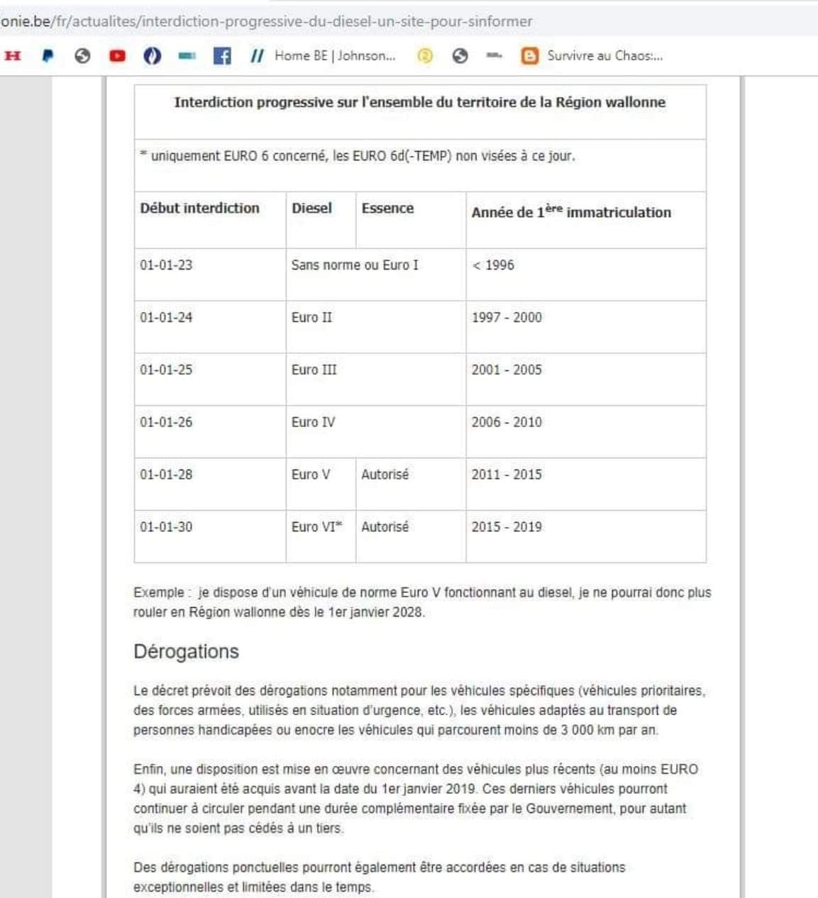 Autant je comprends qu'on doive s'acheminer vers moins d'émissions (mais intelligemment), autant ce programme va à mon avis créer des pbs pour les gens (nombreux) qui ont besoin de leur (vieux) véhicule pour aller au boulot et qui n'ont pas les moyens d'en changer...