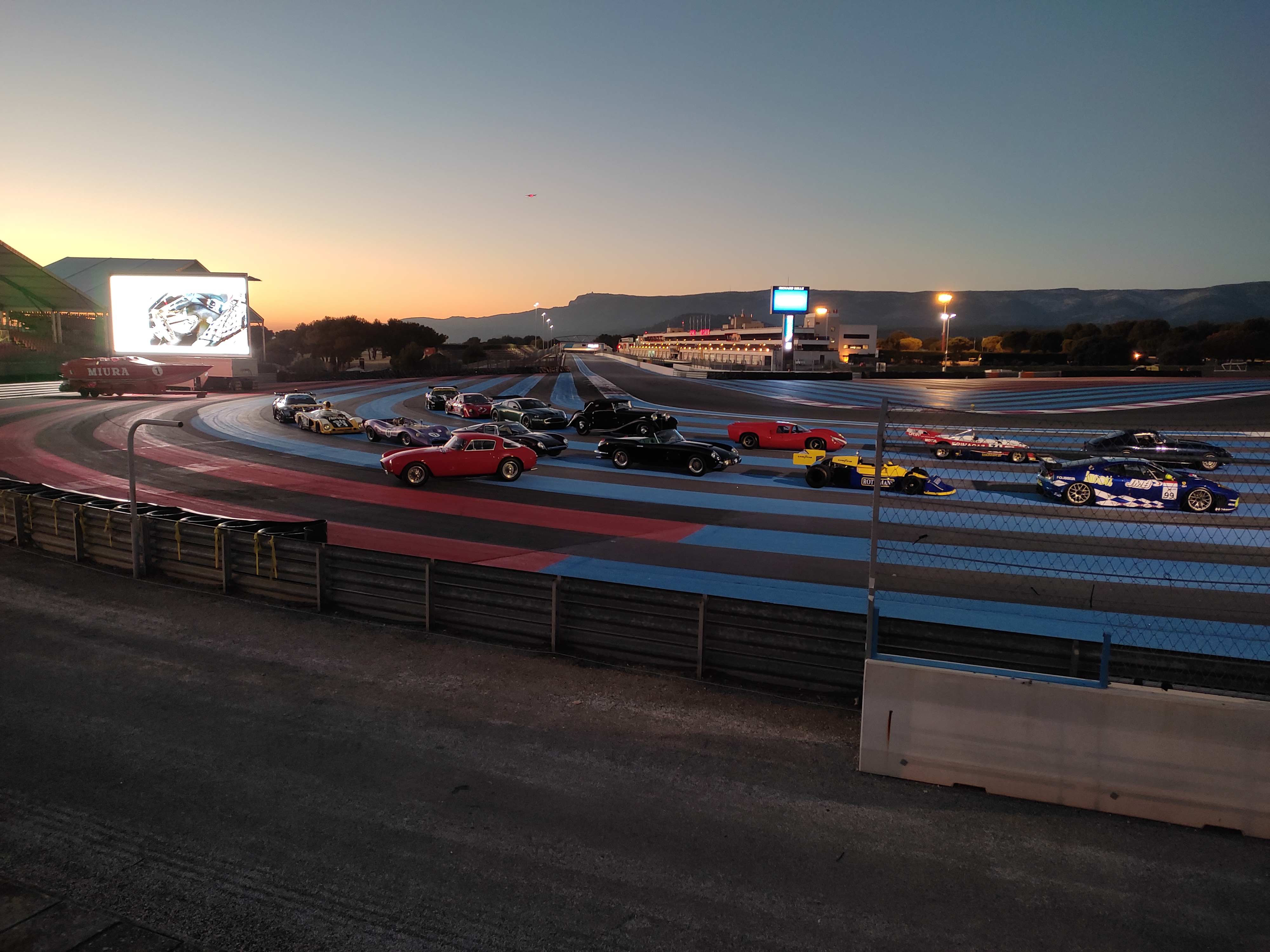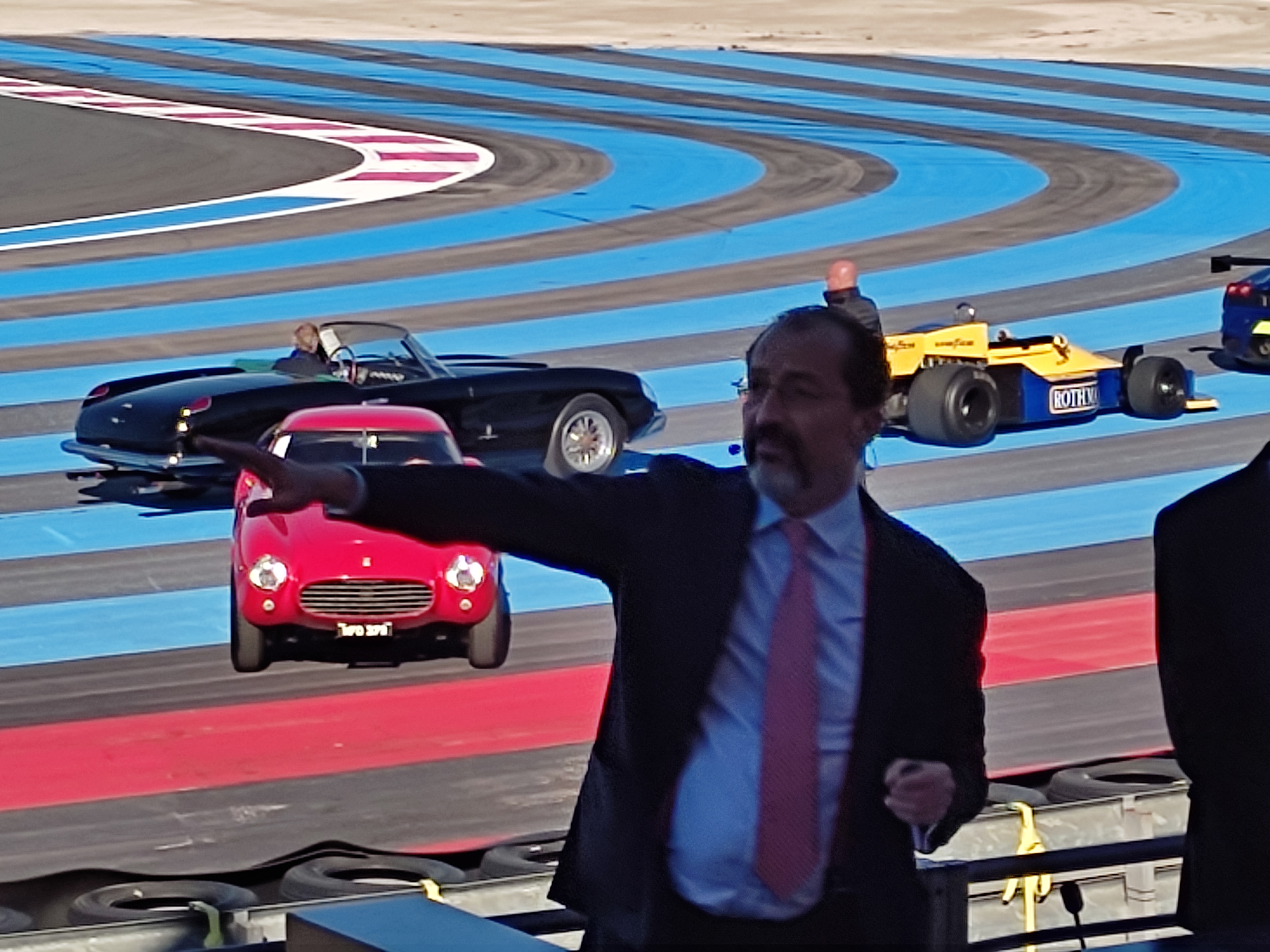 Une surprise de taille pour moi a été la mise en scène avec l'arrivée sur le circuit des voitures les plus en vue, avec en parallèle filmage par drone et retransmission sur grand écran, comme par exemple pour le spyder 250, venant s'aligner devant les tribunes: