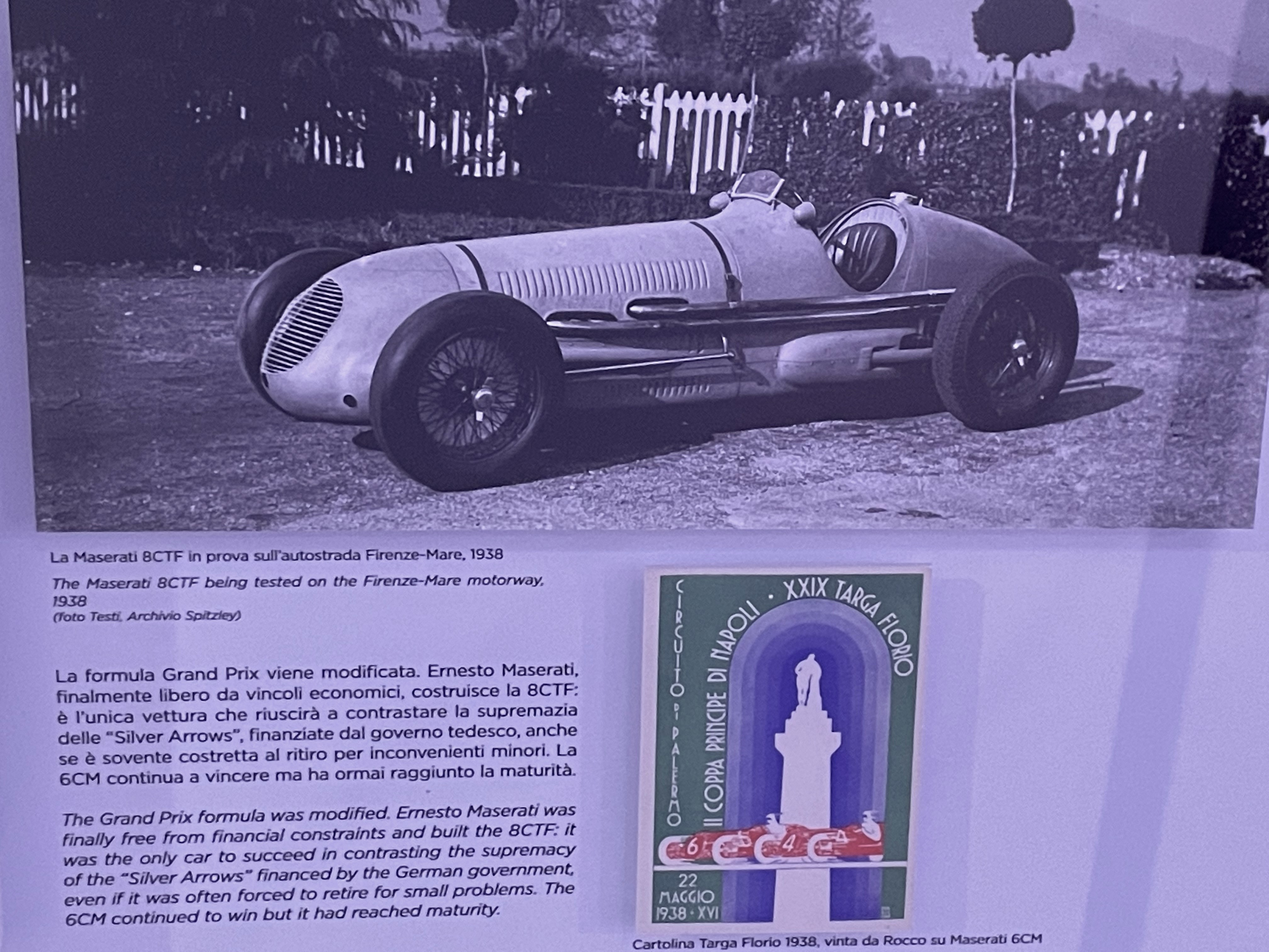 Je vous ai photographié dans la vitrine du MEF les documents suivants concernant uniquement Maserati et respectant à peu de choses près la chronologie.