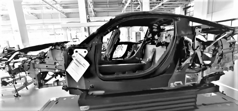 Ci-dessous la structure de la MC20 est celle d’une voiture de course très moderne : coque en carbone centrale (étudiée chez Dallara et réalisée chez Adler dans le Benevento) sur laquelle sont boulonnés de solides berceaux antérieur et postérieur en aluminium :