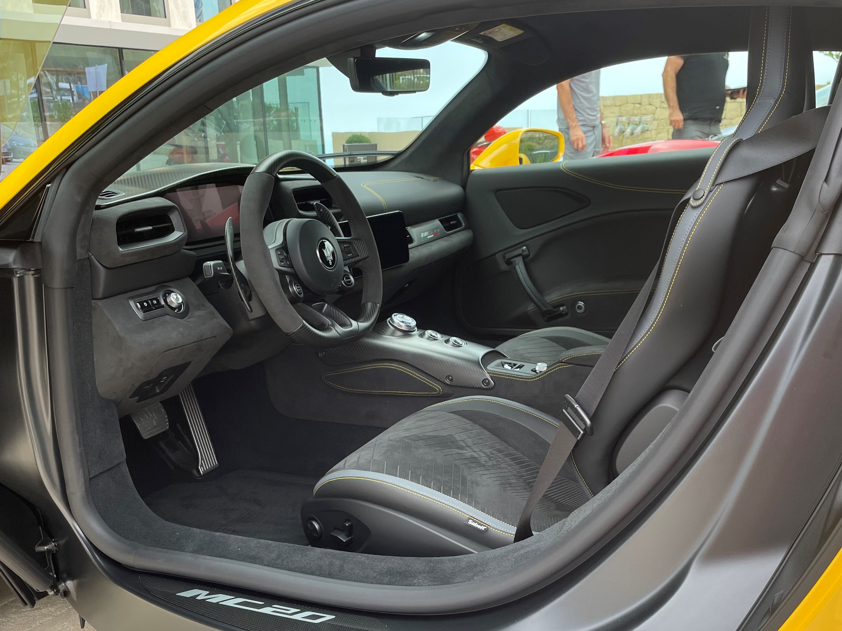 Julien Guyot nous a appris que la paternité du dessin de la MC20 revient surtout à Giovanni Ribotta, sous la direction de Klaus Busse. La pureté de la ligne est saisissante. Les indispensables appendices aérodynamiques d’une supercar de 630 cv capable de 325 km/h sont en carbone peint en noir. Tout le reste renvoie ce jaune profond aux reflets parfois mystérieux car il repose savamment sur une sous-couche bleue.