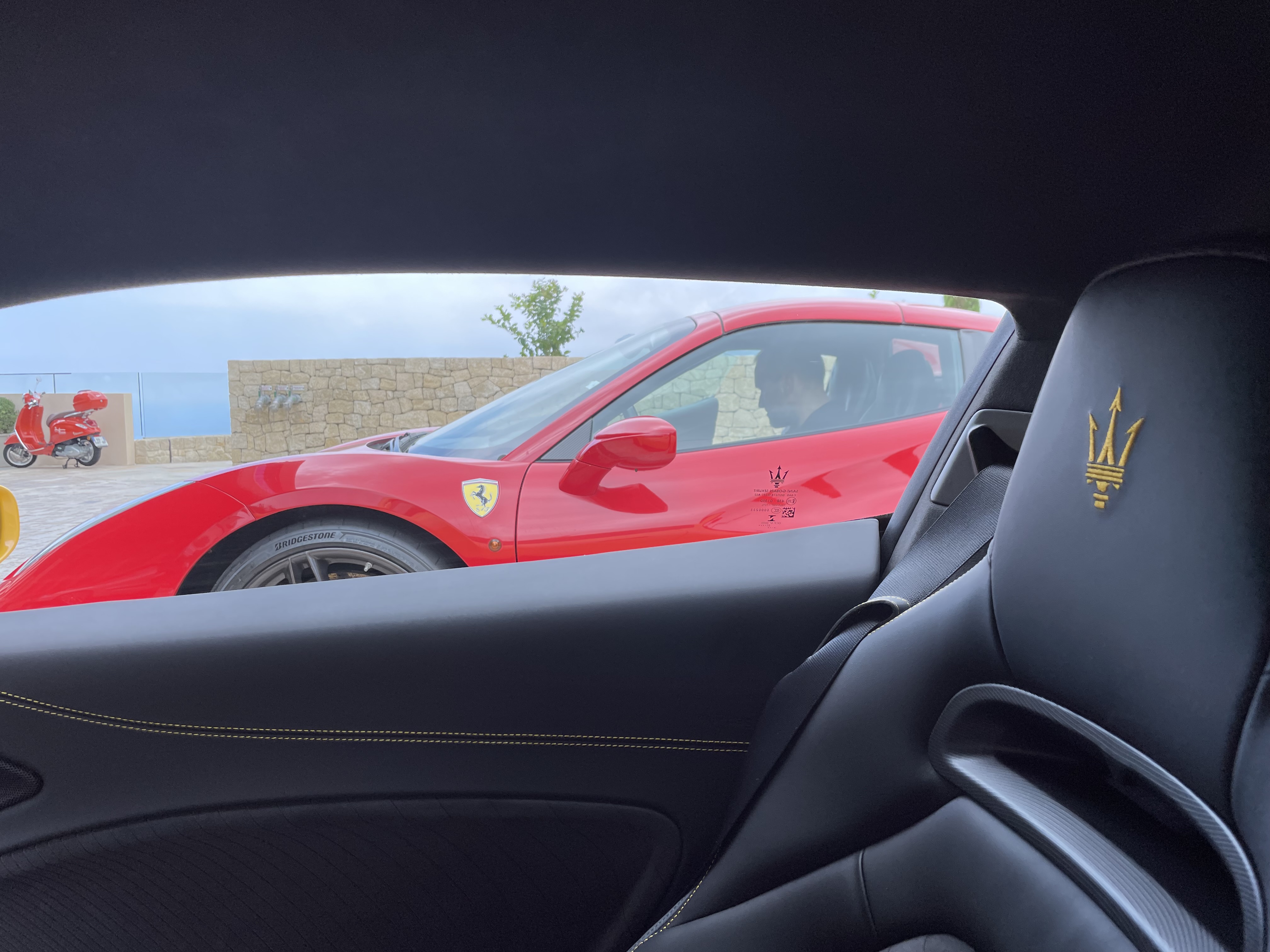 Julien me dit que ce n’est plus totalement vrai de nos jours et puis, avec la zone rouge à 8000 tours, il y a de la marge. C’est vrai mais quand même, je reste vieille école et persuadé qu’un certain rodage moteur est nécessaire ou au moins bénéfique. Petite angoisse à la sortie Monaco, un camion bleu est là. Ouf, les policiers nous laissent passer. Julien me demande d’appuyer sur le bouton relevant l’avant de l’auto pour la petite margelle à l’entrée du parking de l’hôtel. C’est efficace à 40 km/h ou moins mais il faut vite trouver le bouton, pas facile si le volant tourne, puis quand même quelque chose comme 2 secondes sont nécessaires pour lever le nez. Pression sur le bouton R, aucun à-coup, le stationnement en marche arrière est facile avec la camera de recul qui donne aussi les trajectoires. Les deux palettes tirées vers soi en même temps enclenchent la position parking de la boite. Bouton de frein à main électrique et le tour de manège est fini !