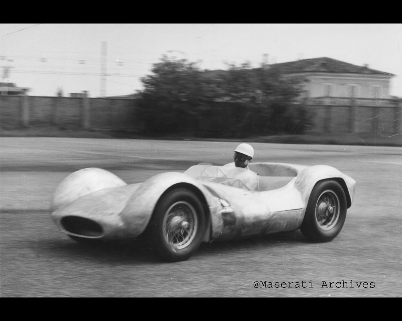 Stirling Moss essayant le proto Birdcage sur l’autodromo di Modena en 1959 :