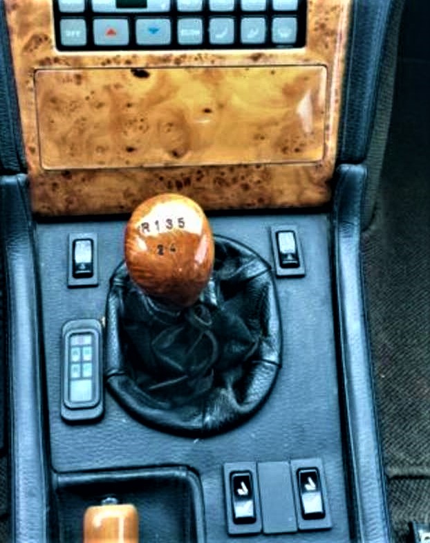 La 2.24v phase 1 conserve la boite classique des Biturbo depuis les débuts en 1981, la ZF inversée à première vers soi. Tiens, remarquez le contacteur à gauche du levier, encore un truc que la 2.24v inaugure : les amortisseurs Koni réglables avec 4 positions de dureté différente :