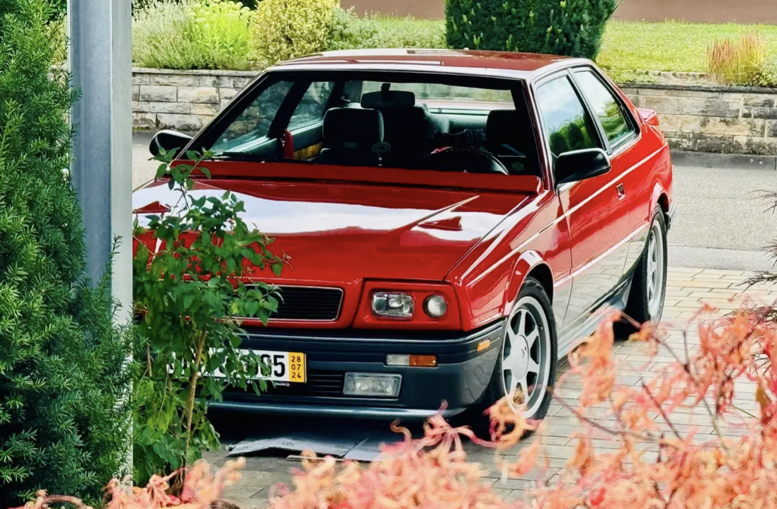 La 2.24v phase 1 avec ses grands phares appartient à la seconde génération des Biturbo, la carrosserie de Pierangelo Andreani ayant été très affinée par Marcello Gandini sur les bords d’attaque du capot et des ailes avant.