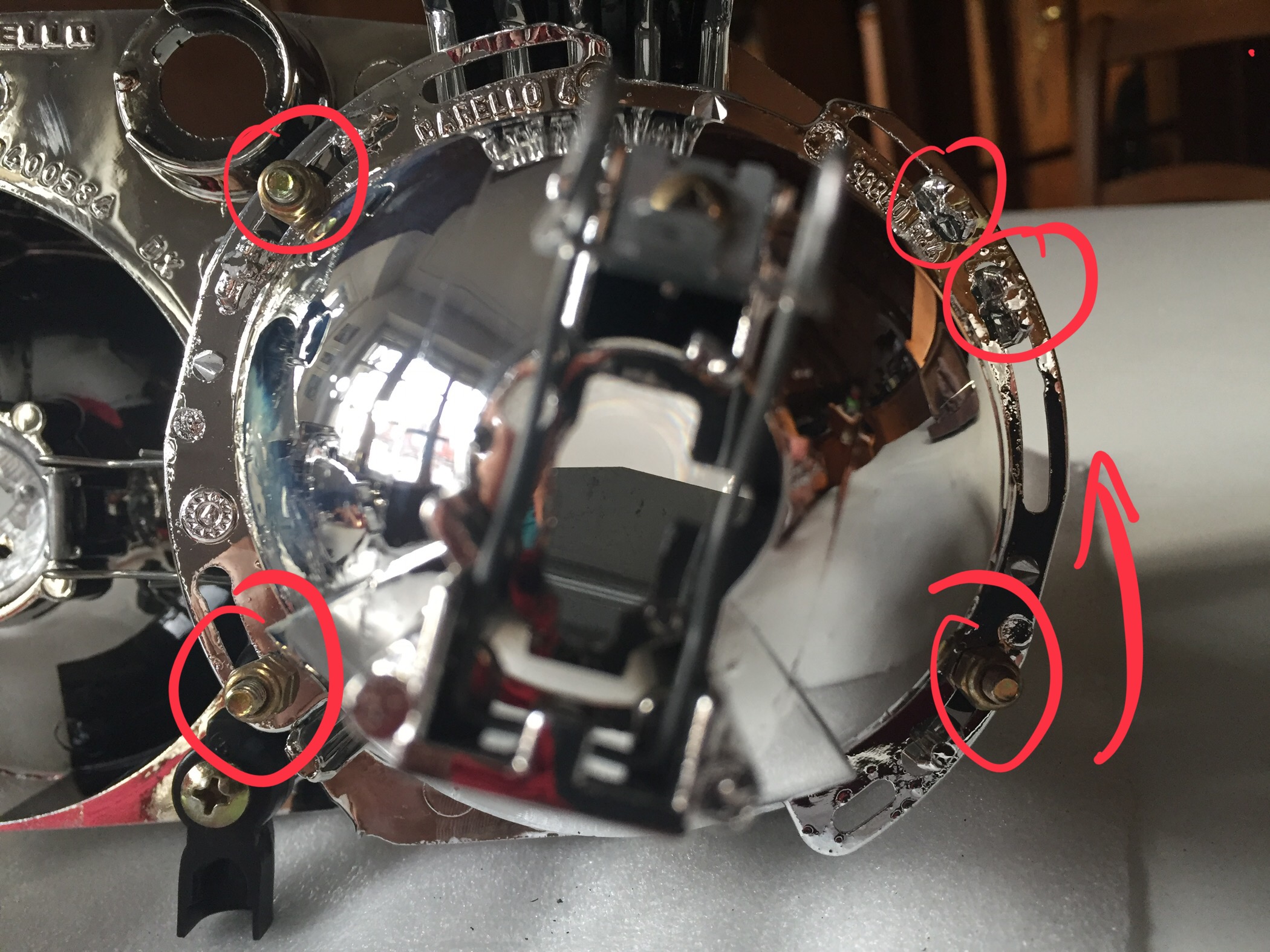 Voilà ce que j'ai retiré ce matin (et maintenant, le phare rentre bien plus facilement et je sais passer ma main pour mettre la vis