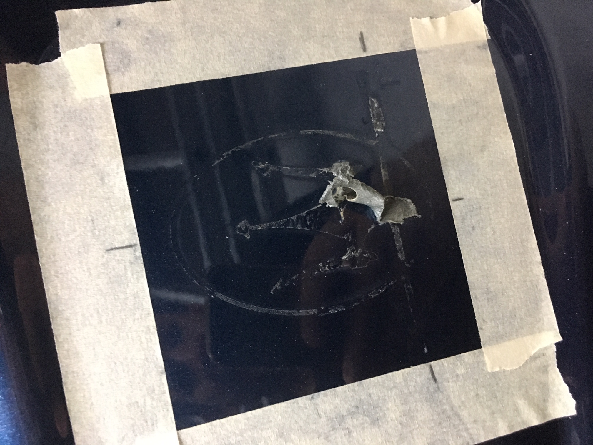 On commence par repérer la position du monogramme en posant du scotch de masquage peinture et en faisant des marques dessus: