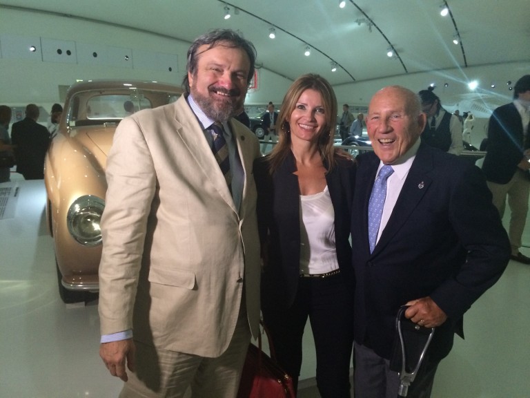 C'est Adolfo Orsi, le grand expert en voitures de collection, fils d'Omer Orsi, qui a réalisé cette richissime vitrine. on le voit ici en 2014 avec Sir Stirling Moss et Silvia Nicolis qui dirige le musée Nicolis près de Vérone (elle est la fille du fondateur de cette collection fabuleuse à laquelle appartient l'une des trois A6 1500 GT de toute première série derrière eux).