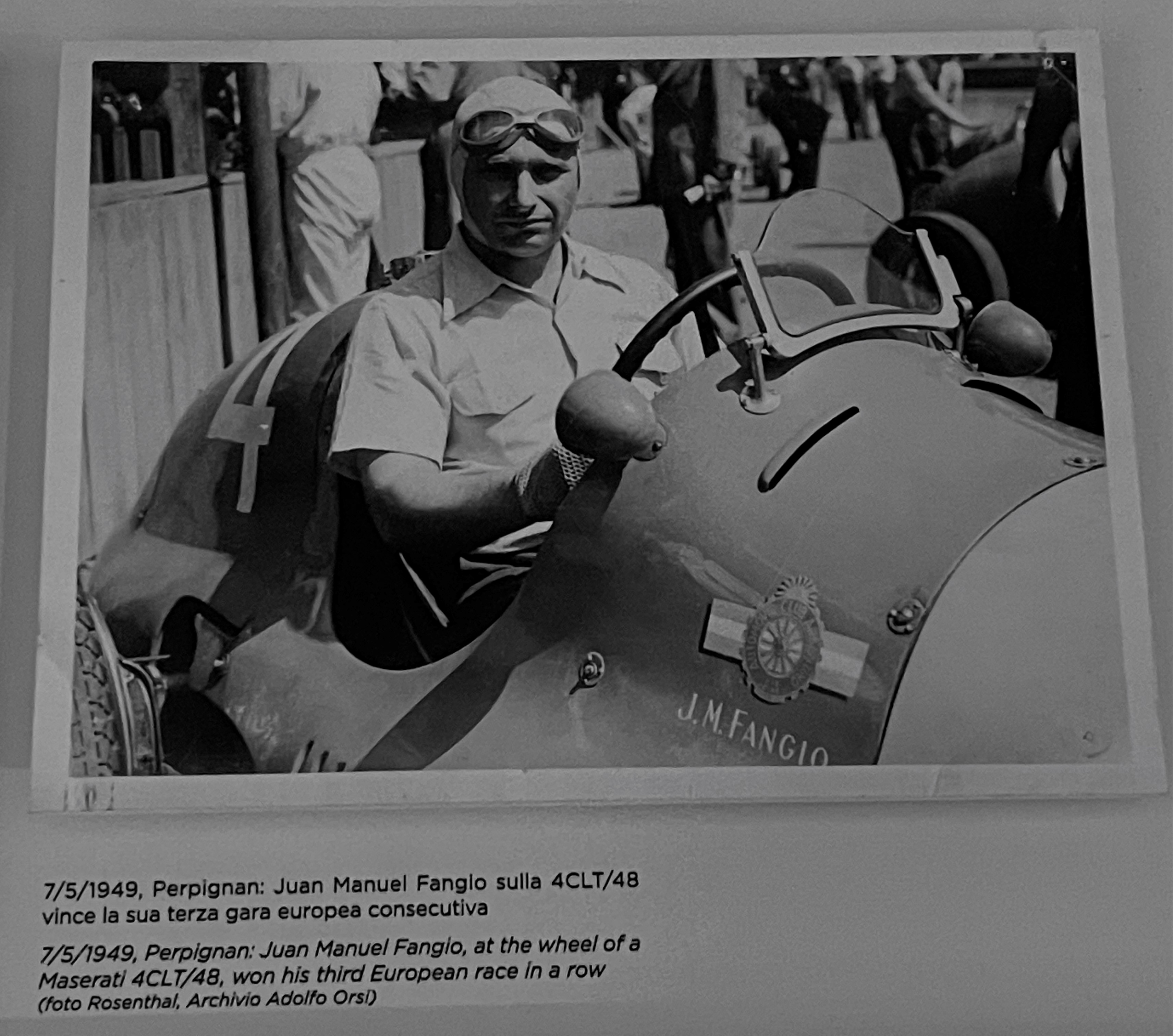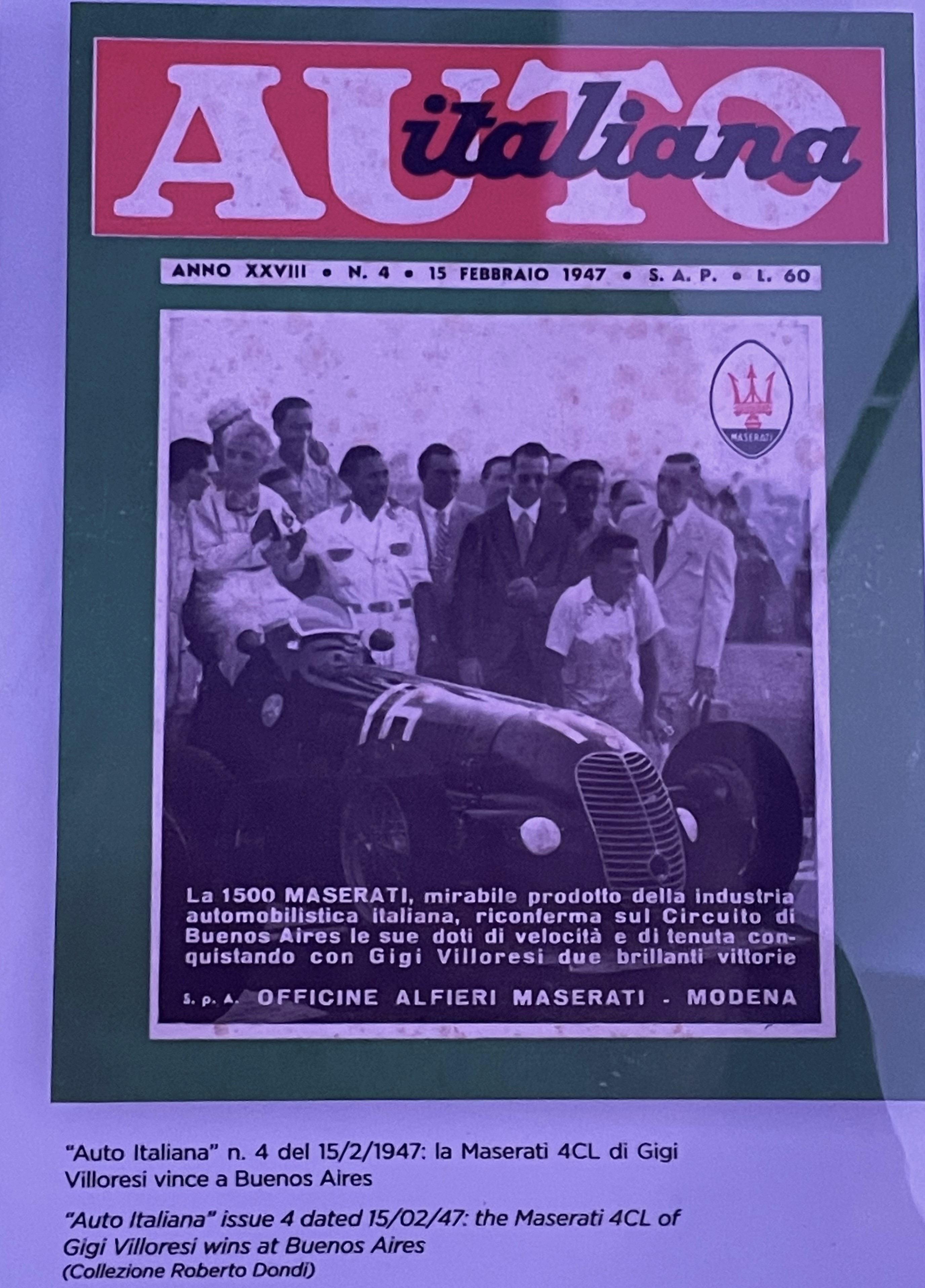 Adolfo Orsi junior m'a dit que cette photo a été prise le mardi suivant la victoire de Fangio au grand Prix d'Argentine en janvier 1954 pour la première course de la 250F. Dès la fin victorieuse de la course du dimanche, Juan Peron avait demandé à Adolfo Orsi senior de venir le voir le lendemain au palais présidentiel. Mais Adolfo Orsi avait dit " non, je viens mardi" . Il avait besoin de réfléchir et de contacter ses banquiers. Peron et Orsi concluront dans l'après midi du mardi un accord d'installation de machines outils Maserati en Argentine contre remboursement en blé. Adolfo Orsi emprunta pour cet investissement mais Juan Peron sera déposé par un coup d'Etat en 1955 et ses successeurs ne reconnaitront pas les dettes contractées par Peron. De là vinrent les grosses difficultés financières du groupe Orsi et de Maserati ... qui sera sauvée par la 3500GT en 1957
