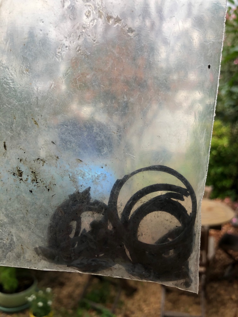 J'ai également déshabillé le coffre, afin d'enlever des petits bouts de rivets d'anciennes plaques d'immatriculation, faisant un petit bruit métallique à l'ouverture ou fermeture du coffre. J'en ai récupéré 5 ou 6 mais UN