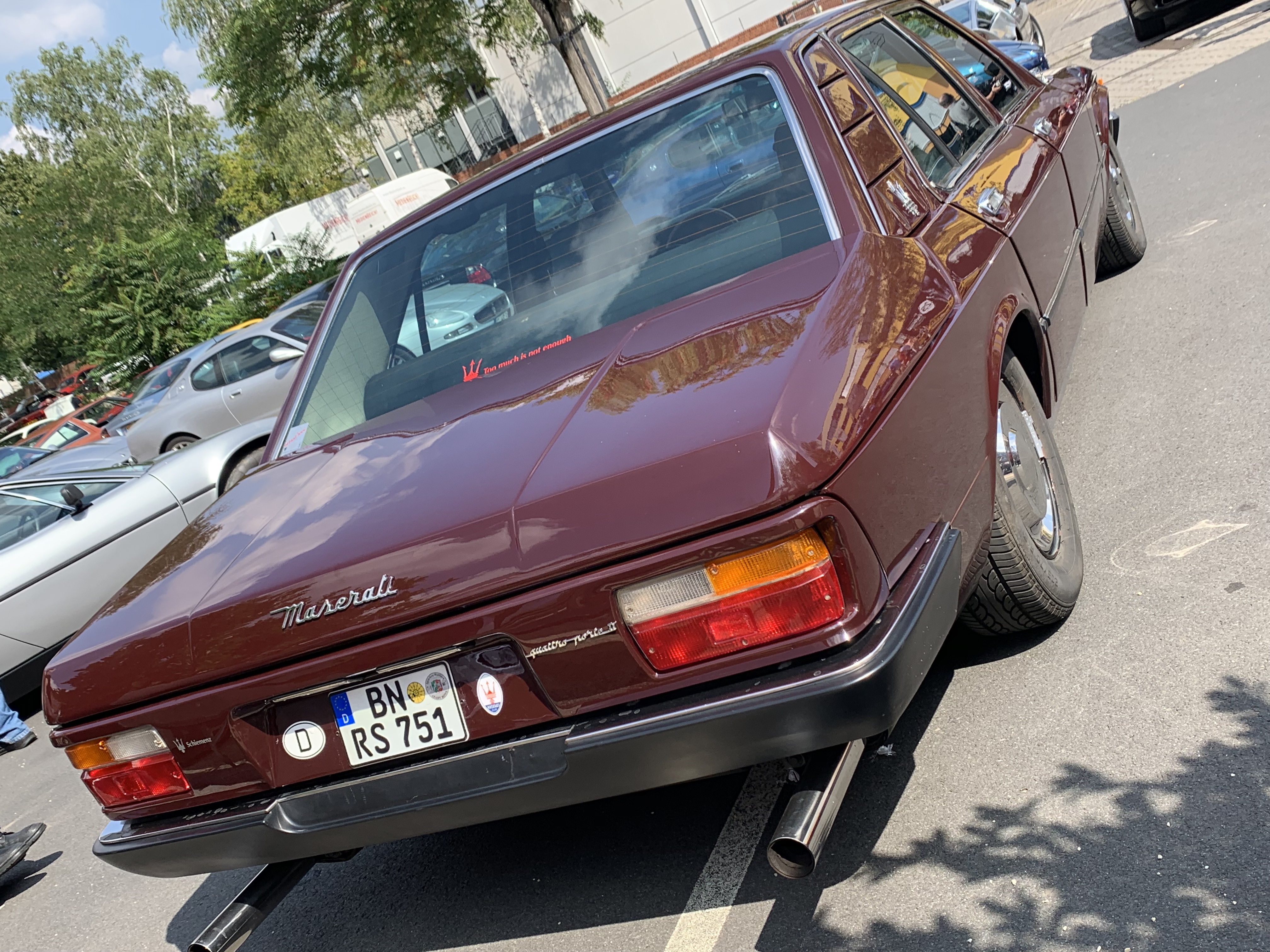 Voilà l une des 12 Quattroporte II, traction avant donc, roues indépendantes, dessinée par Bertone à la fin de l air Citroen, suspension hydraulique. Les bouquins disent qu elles étaient toutes partie en Arabie. Visiblement l une est revenue en Allemagne.