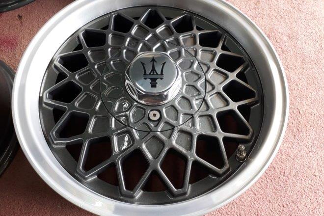 15 inch alloy wheels suited to the 4 stud Maserati Biturbo.